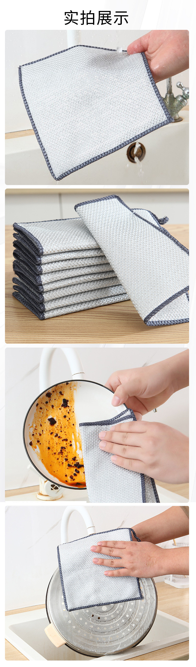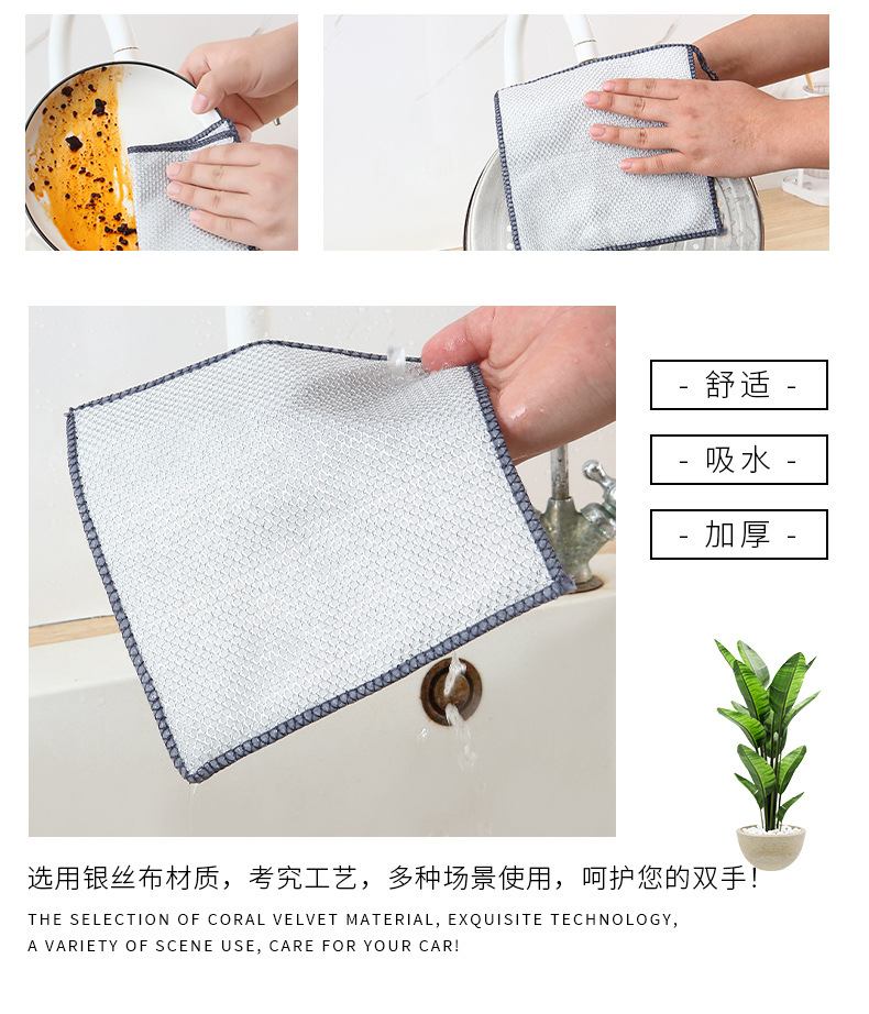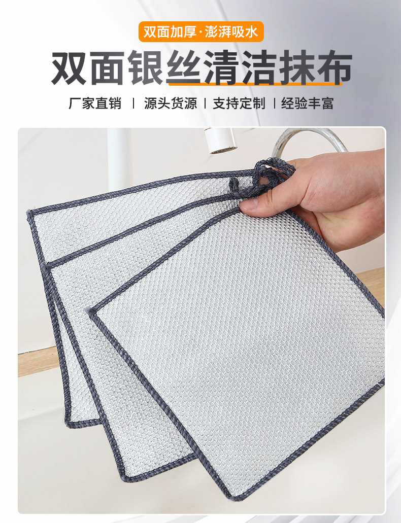 厚手の銀糸雑巾の皿洗い布は超耐磨耗性があり、油をつけずに家庭用台所の調理台の清潔な布を汚れさせる
