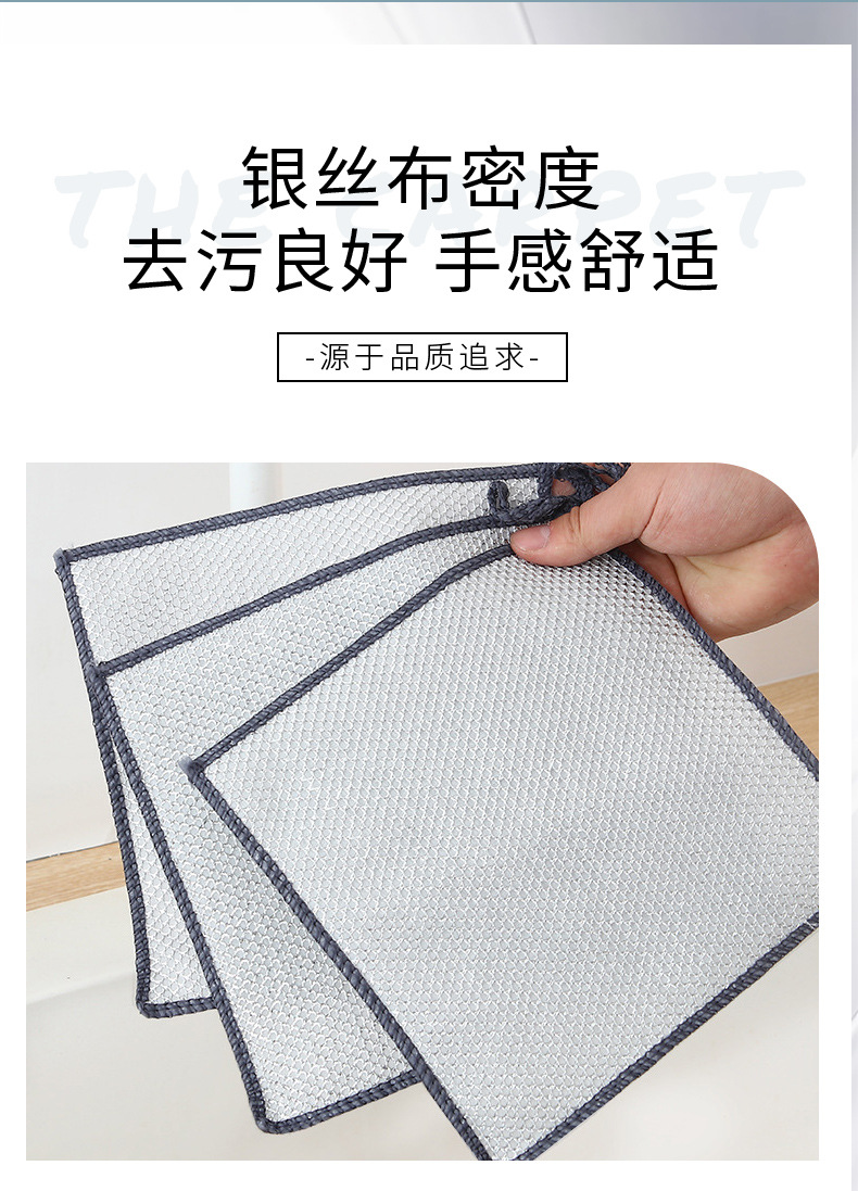 三層銀糸たわし 家庭用食器洗いタオル ステンレス専用キッチン食器洗い布 油汚れなし跡が残らない布