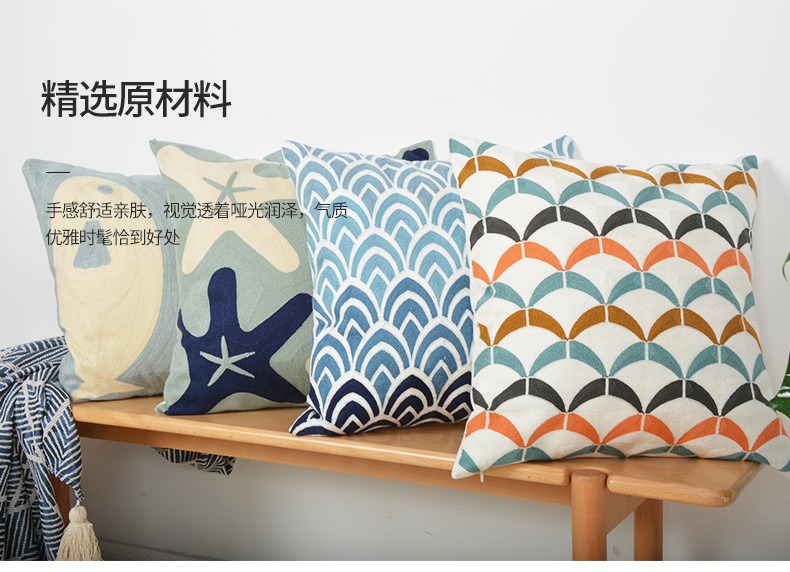 国境を越えた現代のシンプルな寝室の家庭布芸クッションソファー枕芯枕カバー北欧刺繍刺繍抱き枕