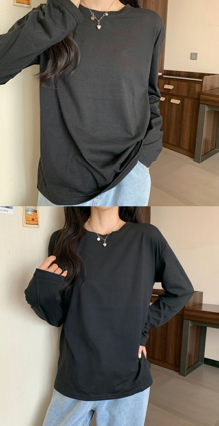 300g純綿長袖tシャツ女性春秋内に純色のシャツを着て、ゆったりとした着心地があります。
