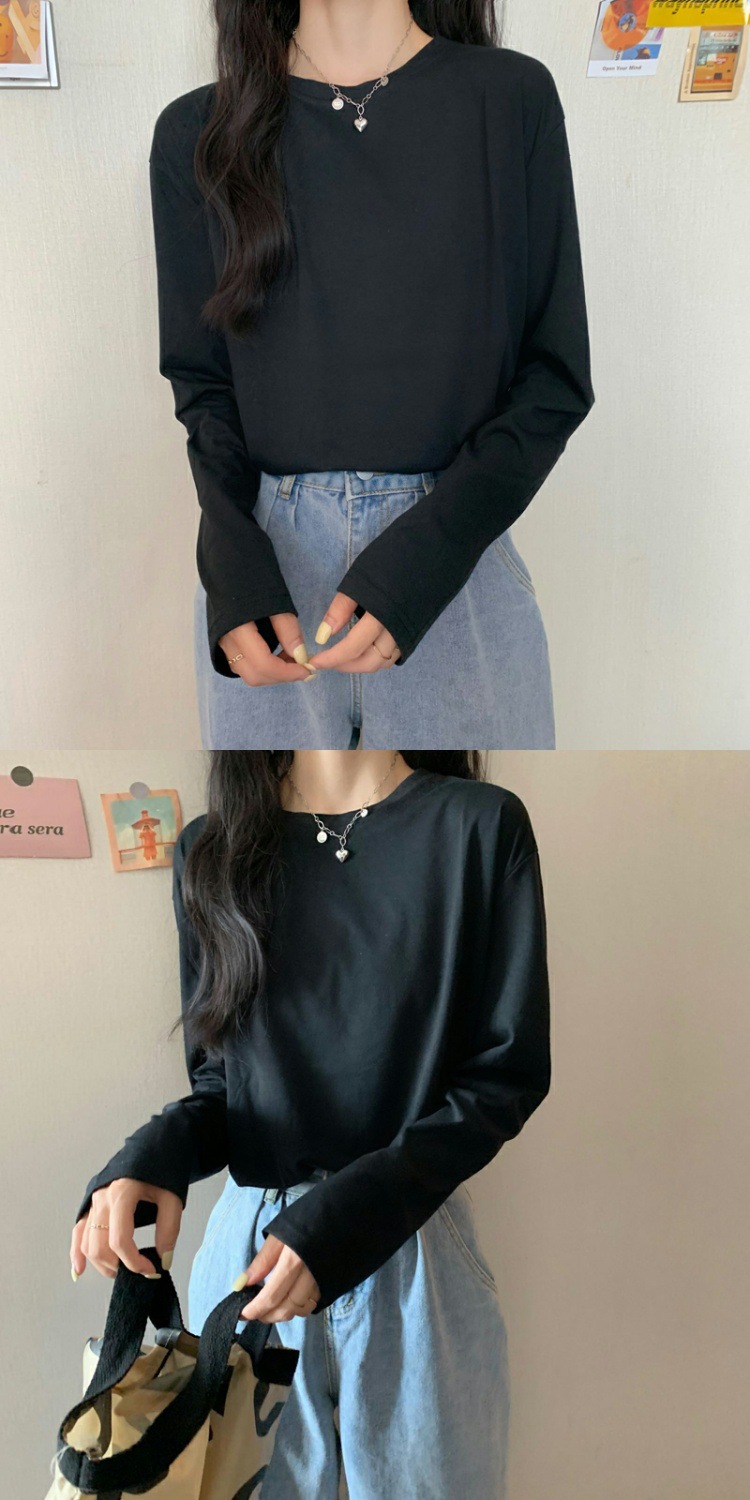 300g綿素材の白い長袖Tシャツ レディース 春秋 着痩せ効果 無地 インナー トップス ベースレイヤー 日韓風