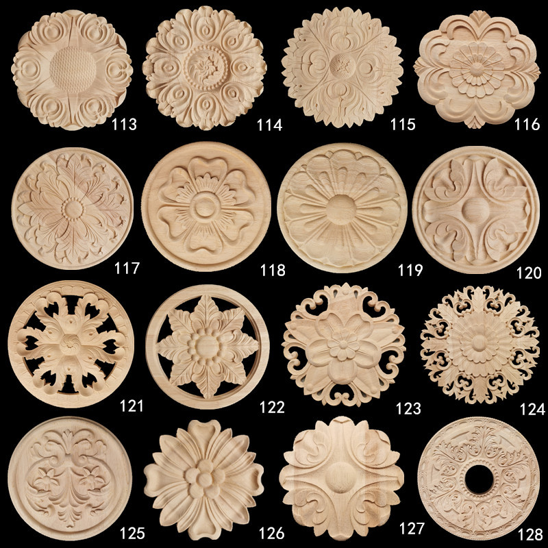 木の円盤の明かりの皿の中国式のヨーロッパ式の円形の扉の中の花は花の木を彫って花の建物の空の丸い四葉の花を彫って貼ります。