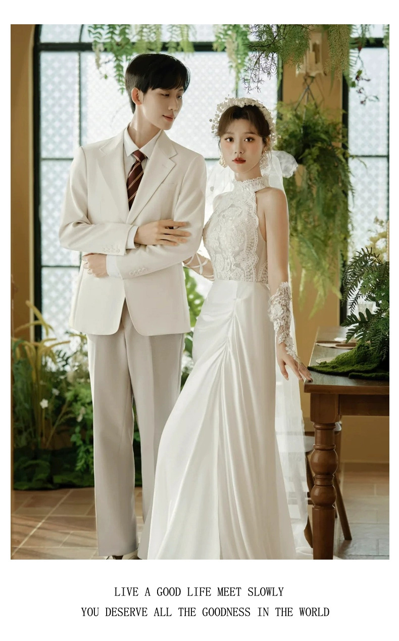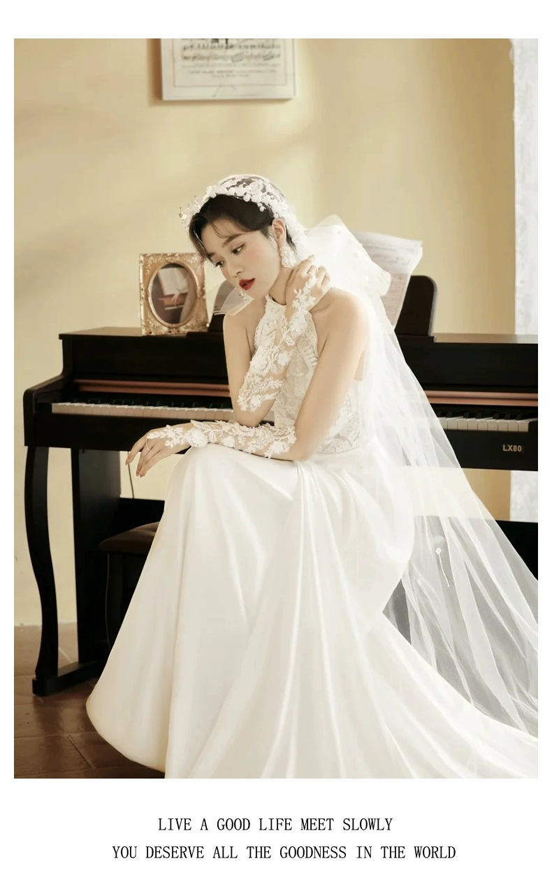 花嫁の主なウェディングドレスの頭糸2024の新しい結婚の中で長い真珠の装飾の影楼の写真を撮って証明書の登録の素糸を受け取ります。