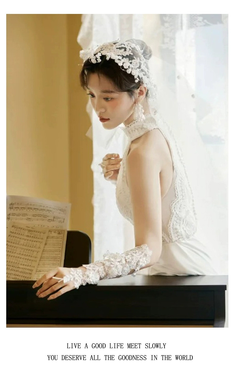 ウェディング手袋花嫁フランスレース花ネット糸薄いシンプルで優雅な超仙レトロ手袋森系アクセサリー