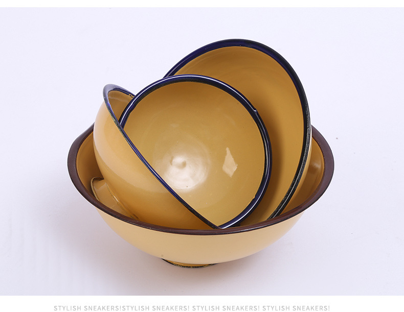 エナメルボウル10-20cm家庭用食事ボウルレストランの古いレトロな黄色の茶碗の泡のボウルの氷のボウルの子供のボウル