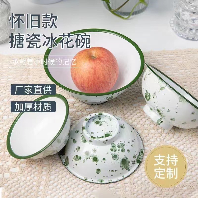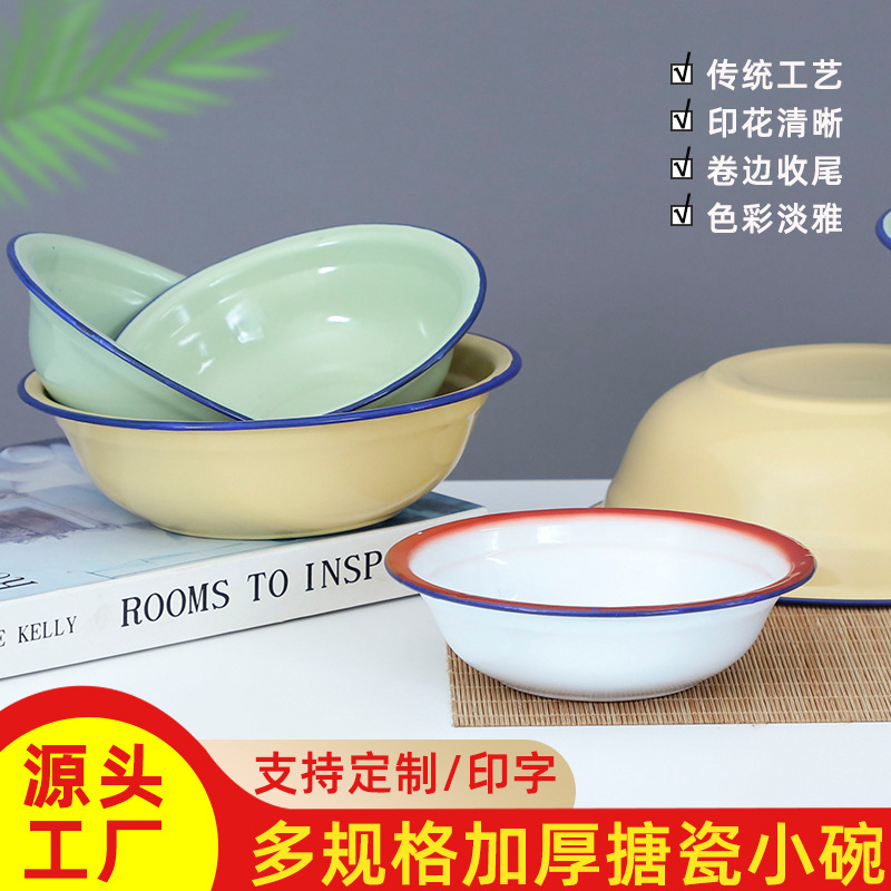 厂家直供怀旧复古搪瓷饭碗加工生产可印logo老式铁饭碗加厚卷边冰