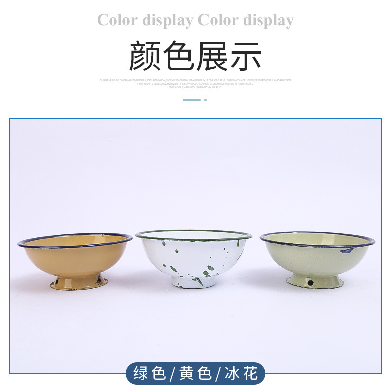 レトロなエナメルの碗の氷の花の高足の碗のアイデアの復古のエナメルの碗のメーカーの直接販売の黄色のエナメルの碗は卸売りを印刷します
