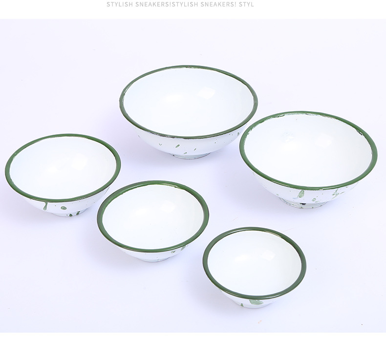 旧式の家庭用エナメルの厚いスープの碗の多規格のエナメルの碗の復古のエナメルのご飯の碗のサラダの碗