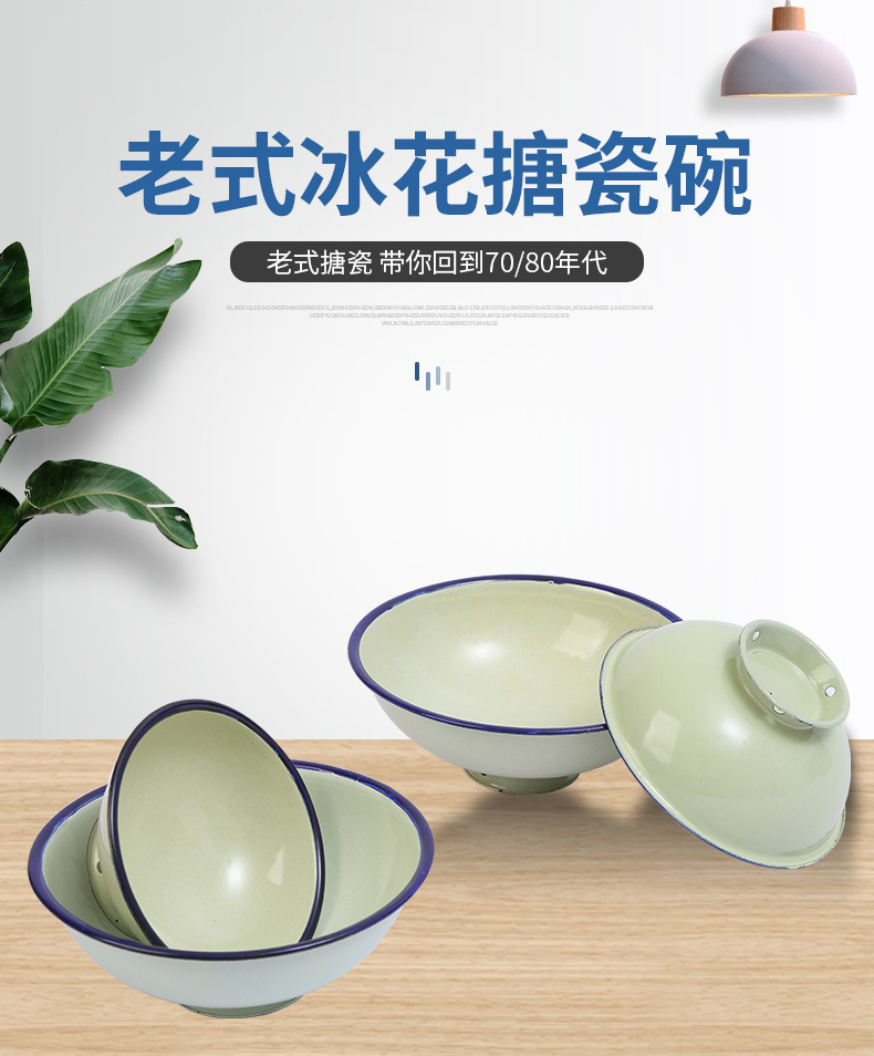 家庭用レトロな氷花模様のボウル、米黄色のエナメルボウル、昔ながらの鉄製の飯椀、縁が巻かれた氷花模様のボウル、家庭用エナメルボウル、エナメル製の飯椀