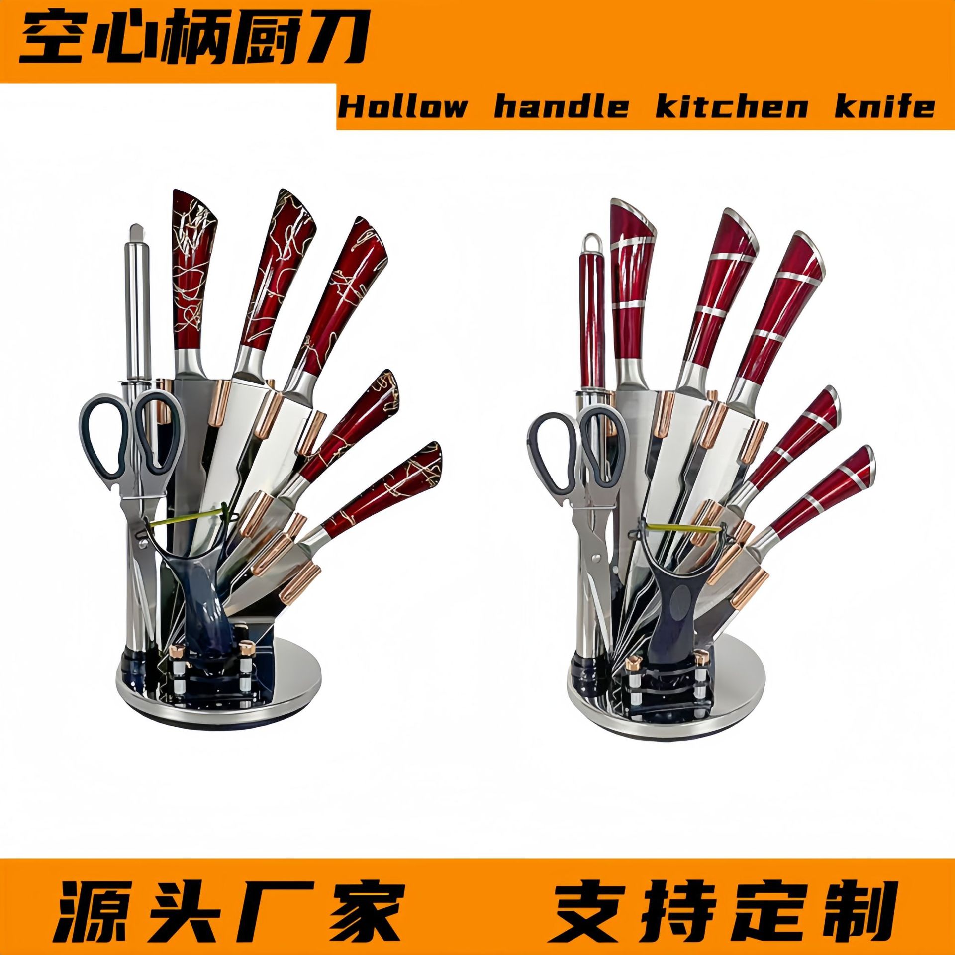 工厂电商外贸跨境批发彩色空心柄不锈钢八件套刀礼品盒包装