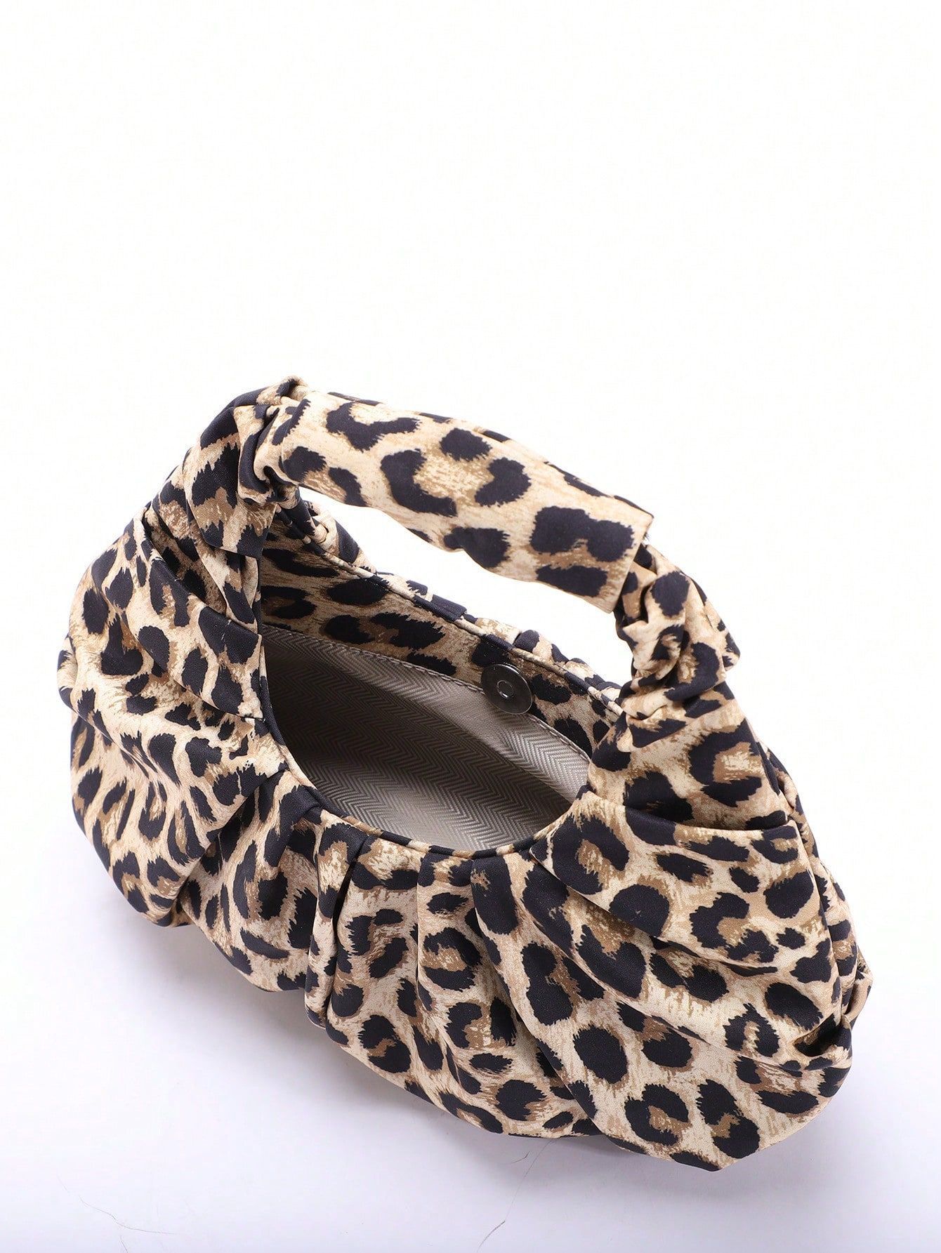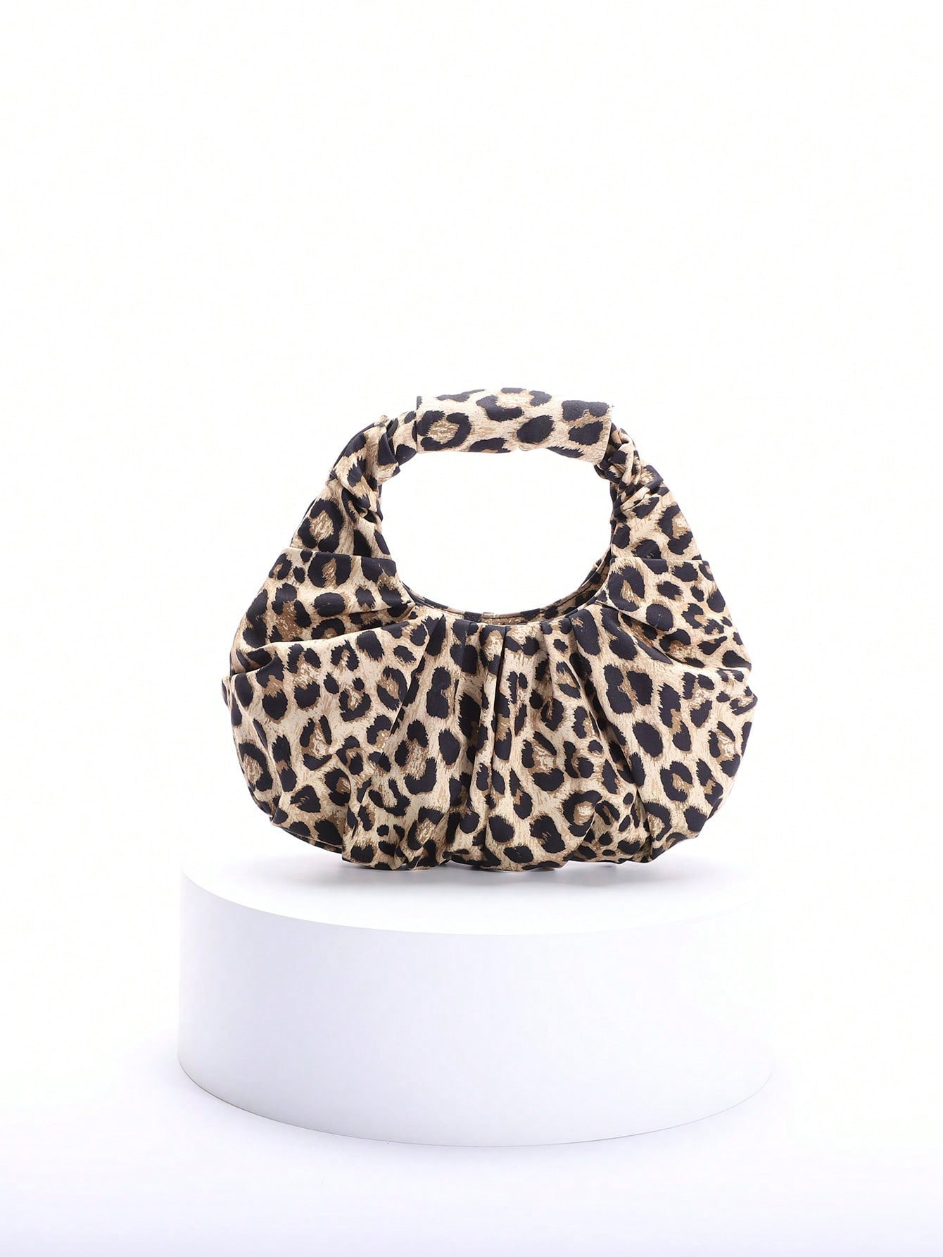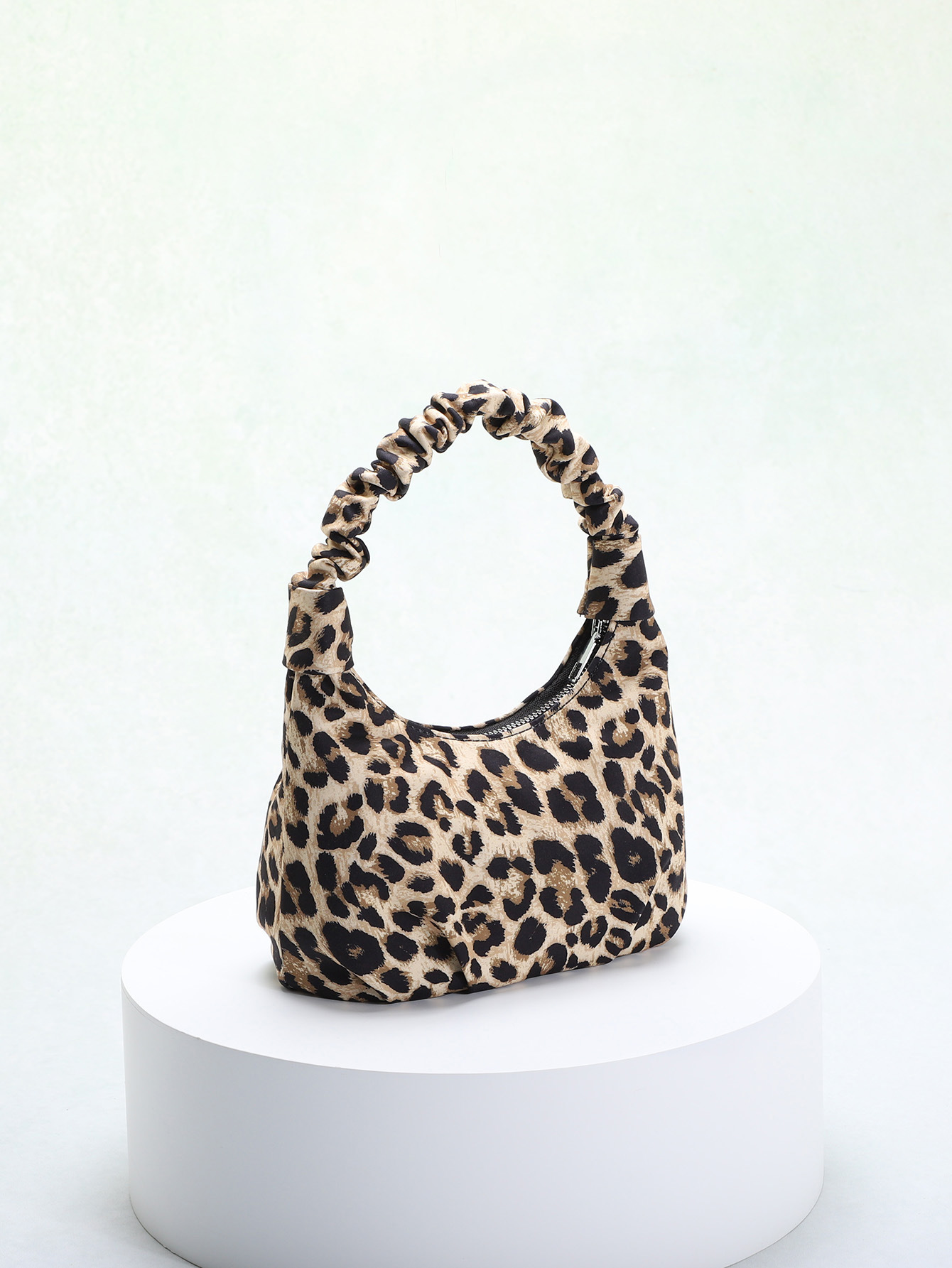 商品番号 カーキヒョウ柄プリーツハンドバッグ