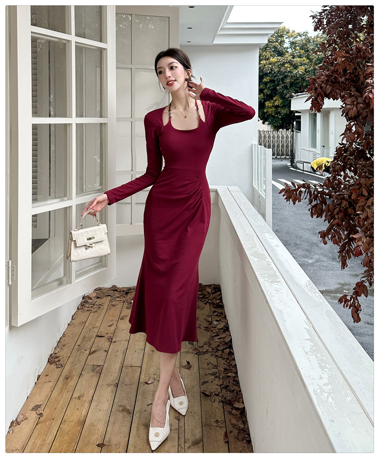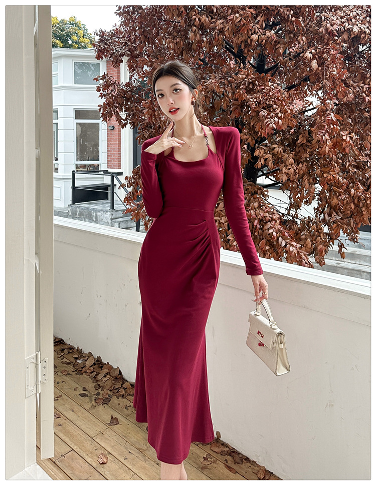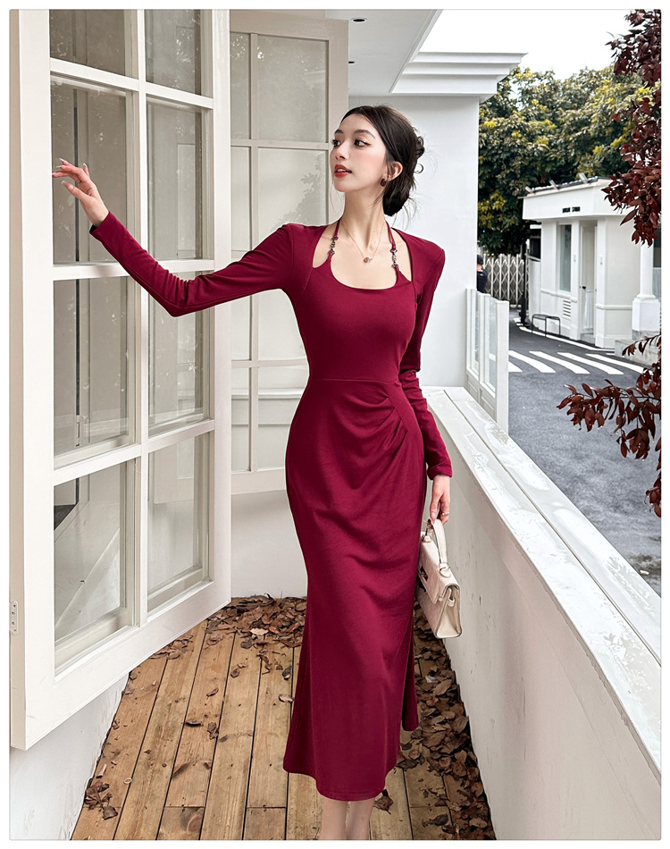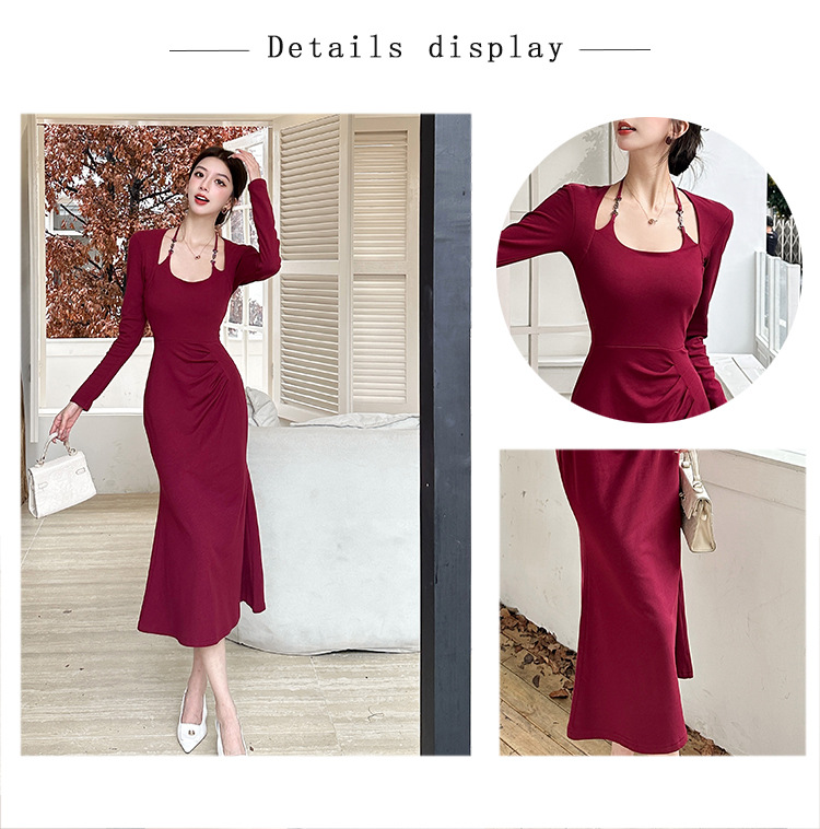 喜姑の披露宴は酢酸のサテンのドレスのスカートの2023秋の新型のファッションの優雅な復古の修身のワンピースを詰めます。