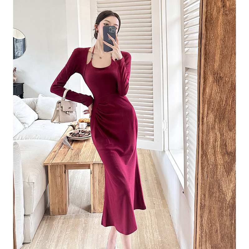 スカート女2023春秋新作ファッションネット紅スカート高冷女神範気質ベロアスパンコールケーキワンピース