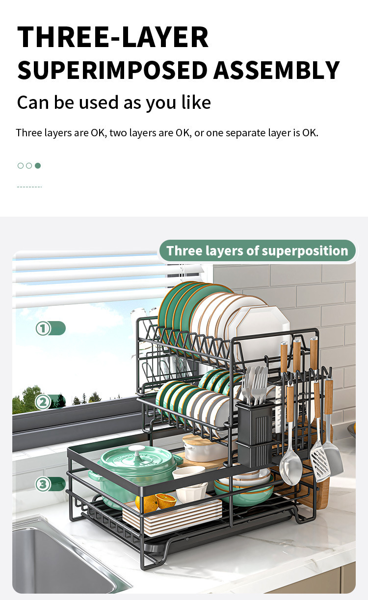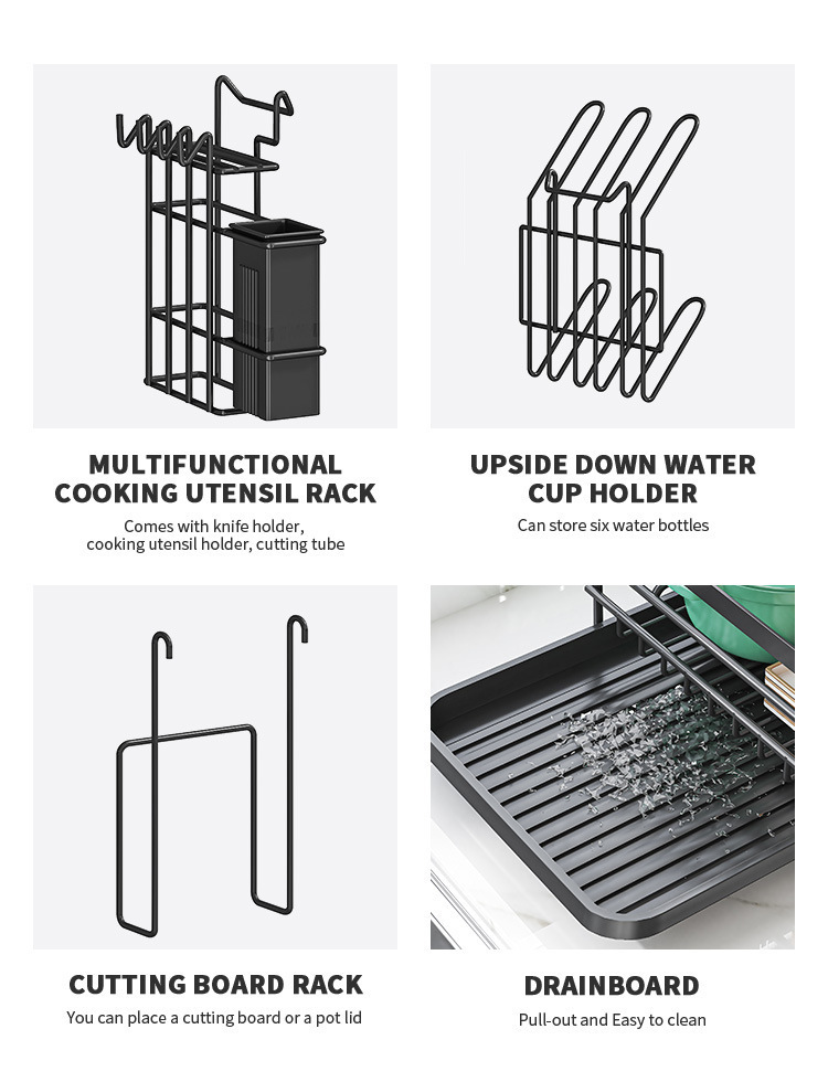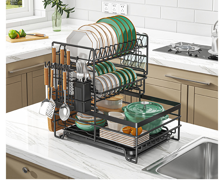 キッチン水切りラック、食器棚、鉄製箸立て、まな板置き、カウンタートップ食器収納ラック、キッチン収納