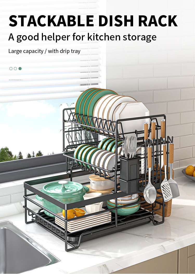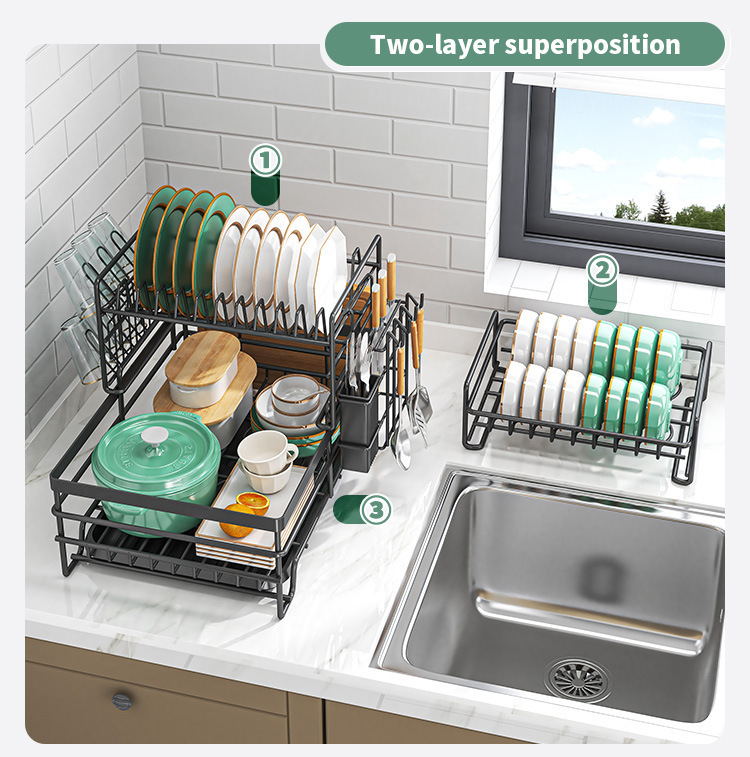 キッチン収納ラック、家庭用多機能食器乾燥ラック、カウンタートップ二層食器乾燥ラックの国境を越えた特別供給