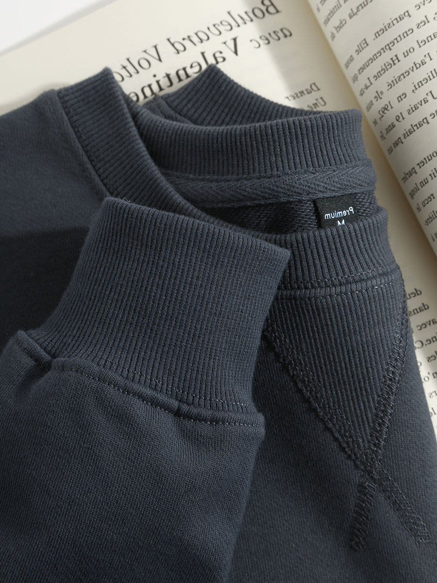 深灰色重磅纯棉毛圈圆领卫衣男士春秋美式宽松无帽长袖上衣打底衫