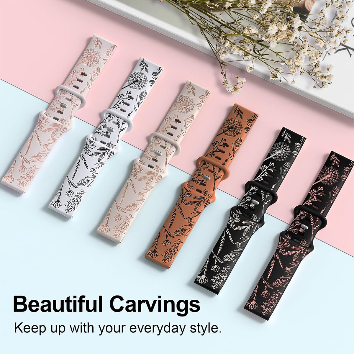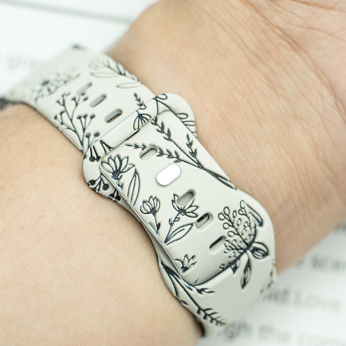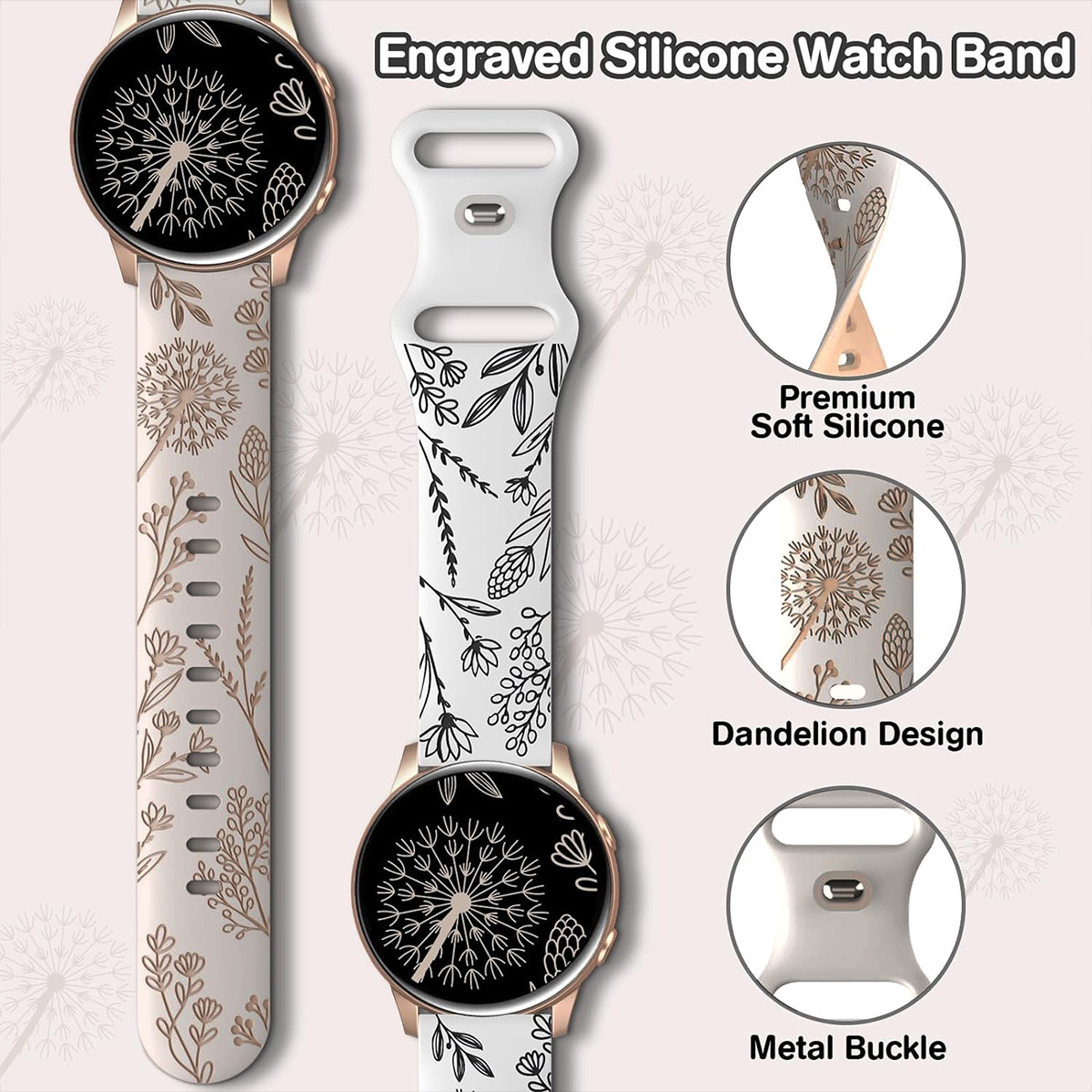 20mm汎用バンドはサムスン華為ラジウム彫刻タンポポ花卉模様八字ボタンシリコンバンドを適用する