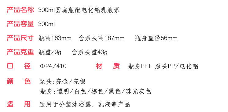 300mlの黒い丸い肩のローションの瓶の電気化のアルミニウムは瓶の体の乳の瓶のシャンプーの瓶を押します。