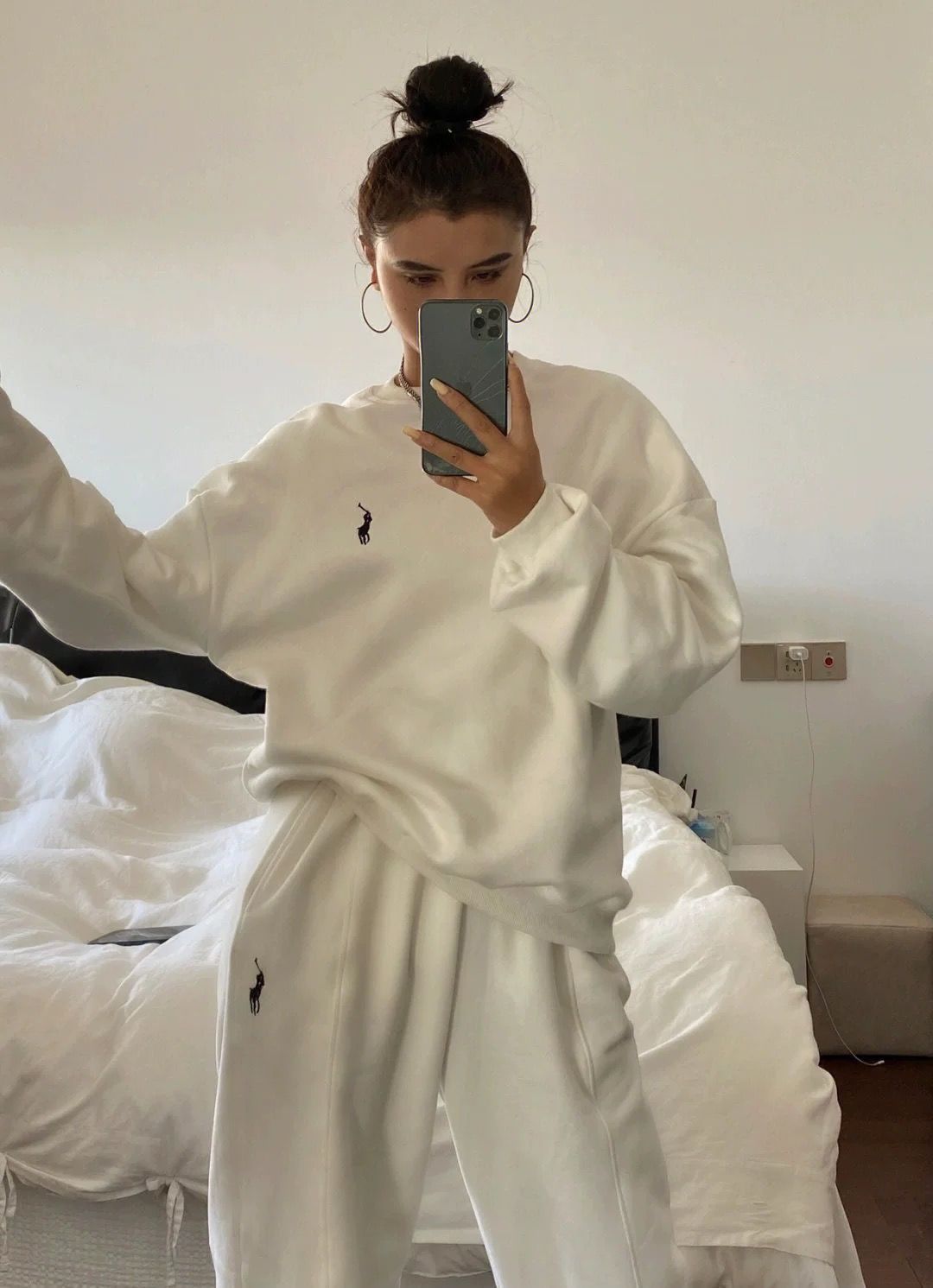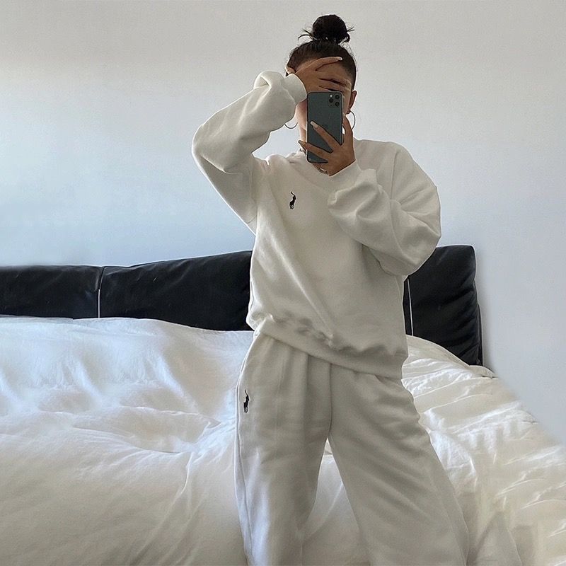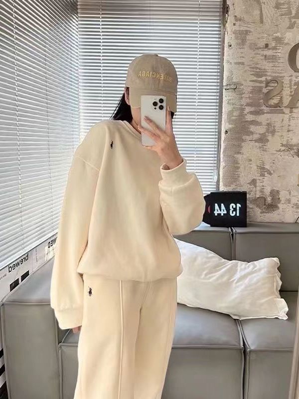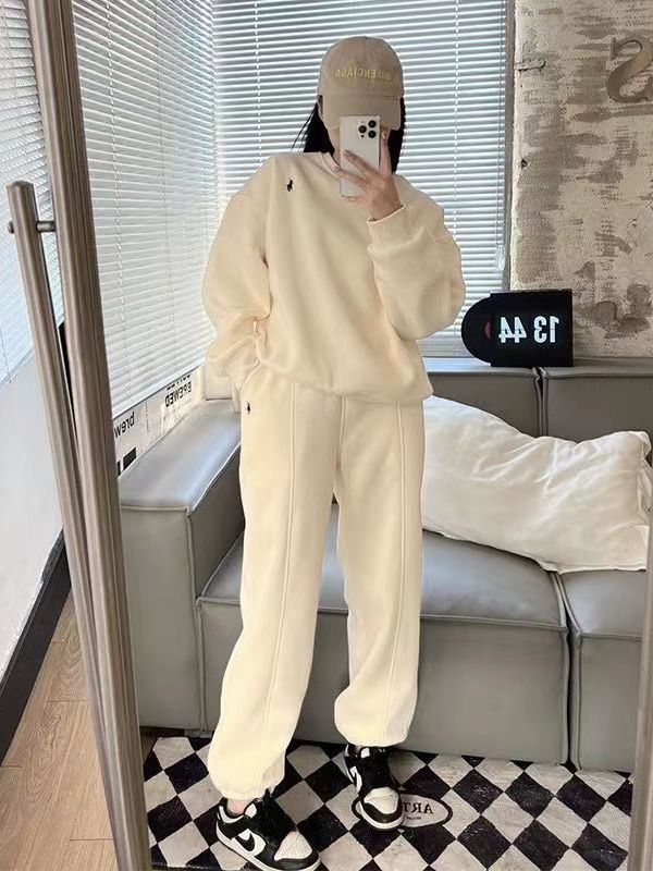 2024春秋の新型の馬の刺繍の衛衣の運動服の女性のスーツの大きいサイズのゆったりしているレジャーはやせている2つのセットを現します。