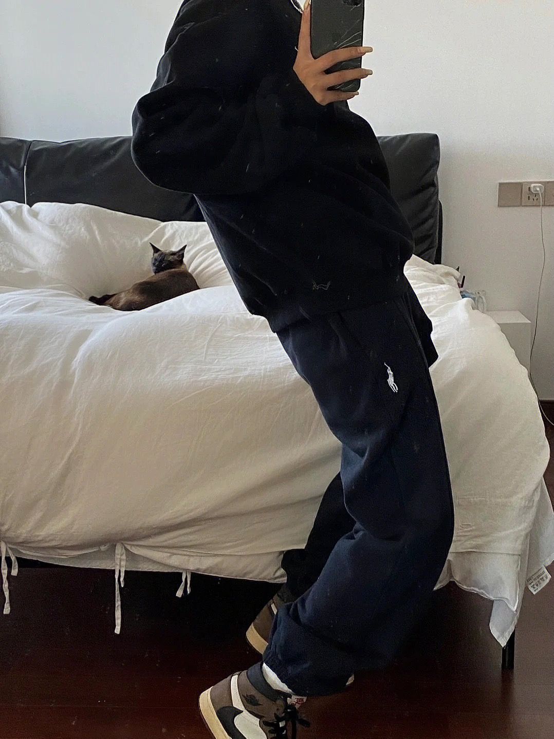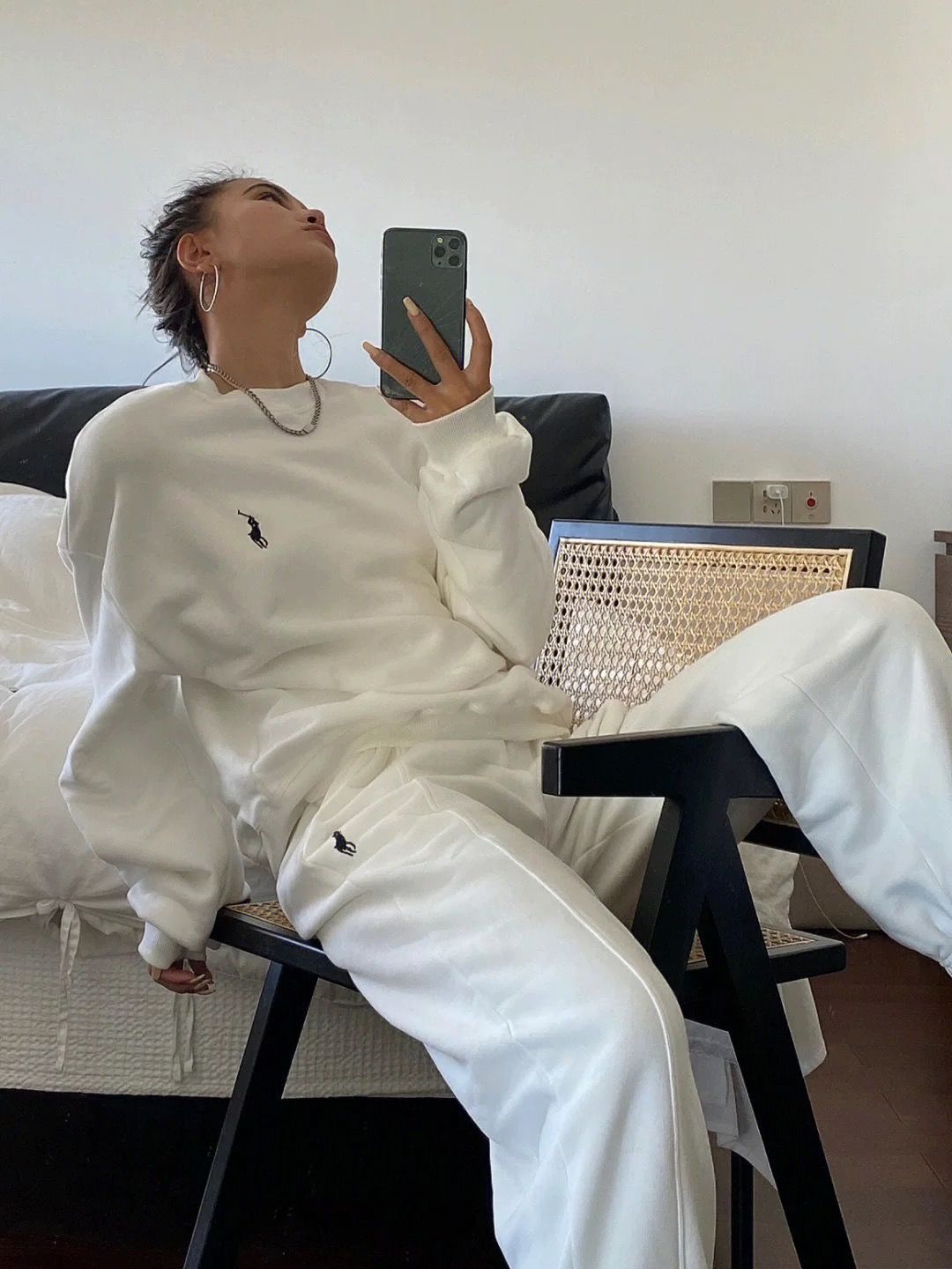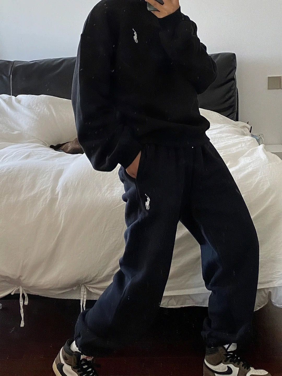 2024春秋の新型の馬の刺繍の衛衣の運動服の女性のスーツの大きいサイズのゆったりしているレジャーはやせている2つのセットを現します。