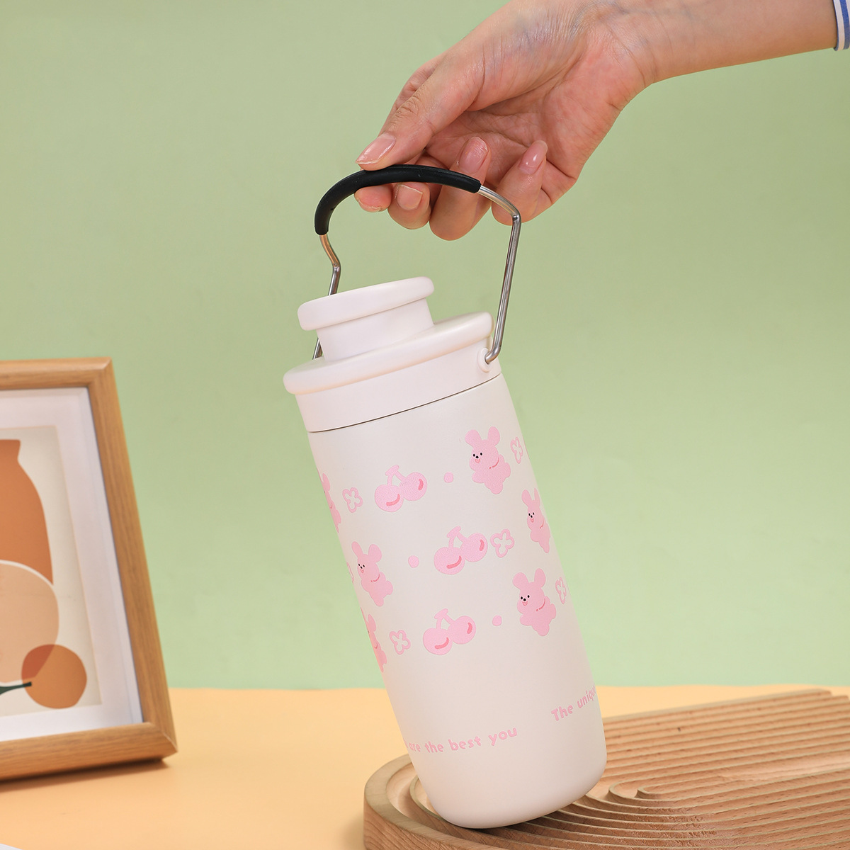 スズランコーヒーカップ 316 ステンレス鋼ダブルストロー断熱カップ屋外用ロープ付きウォーターカップ屋外ポータブル