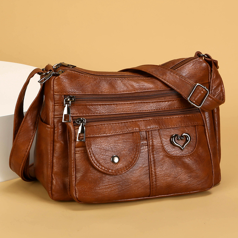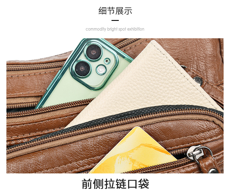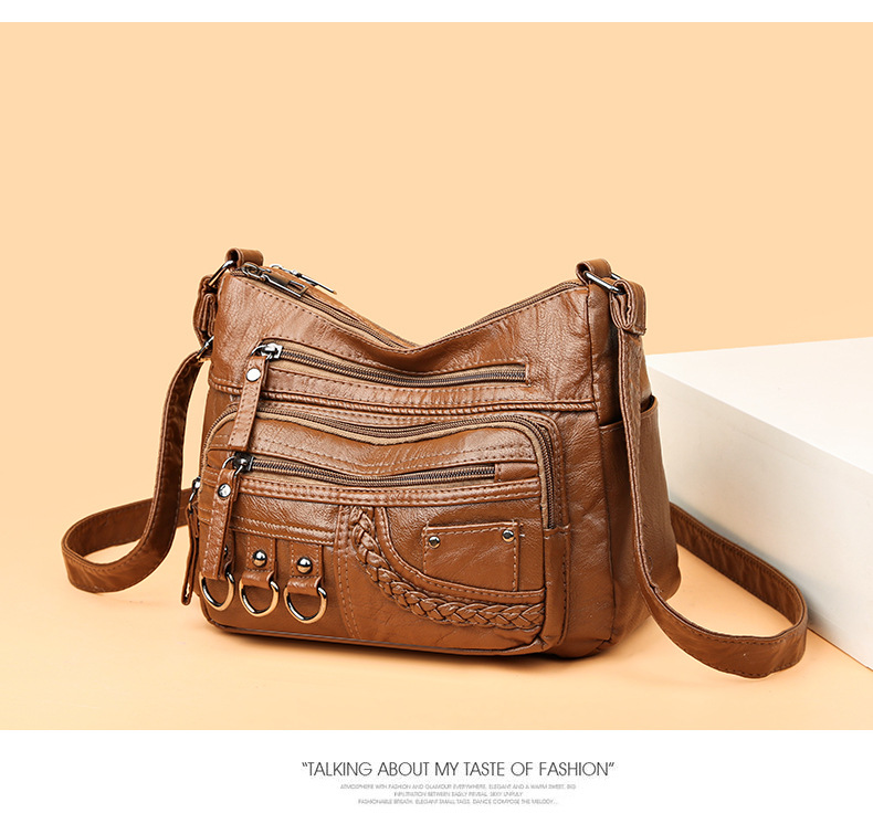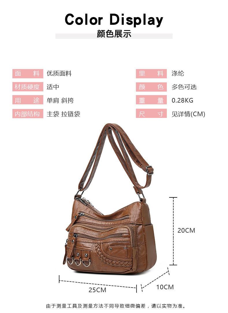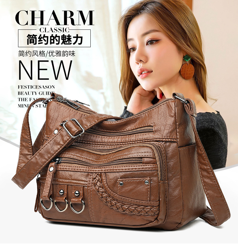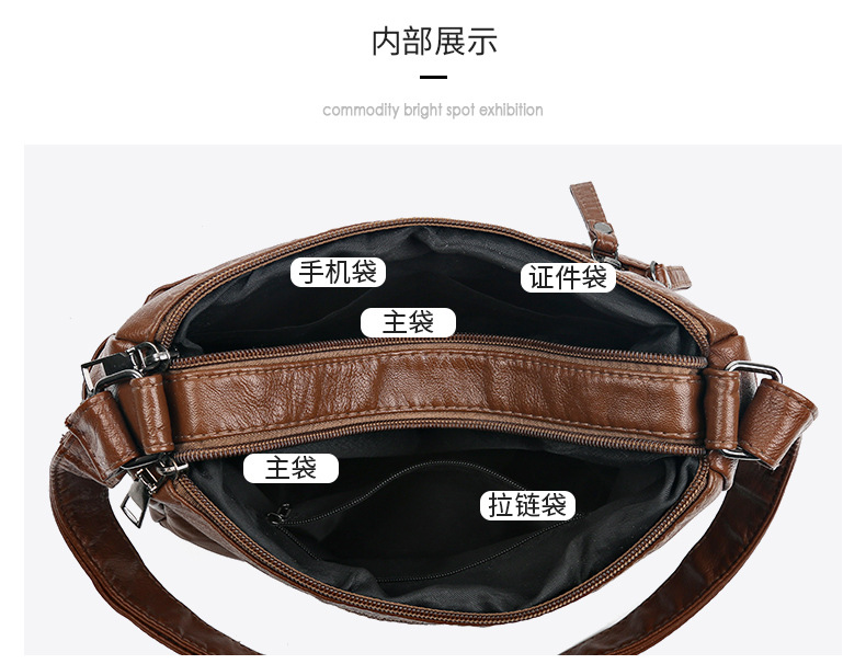 跨境软皮斜挎包新款时尚妈妈包包女大容量韩版简约多层单肩包包