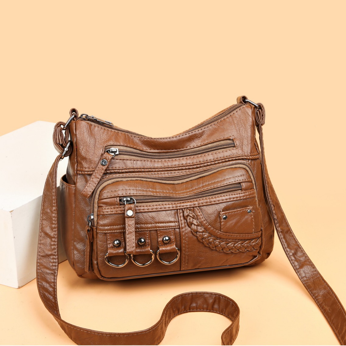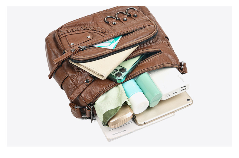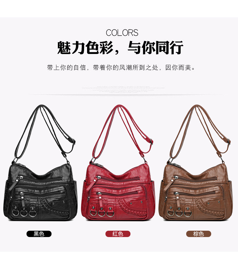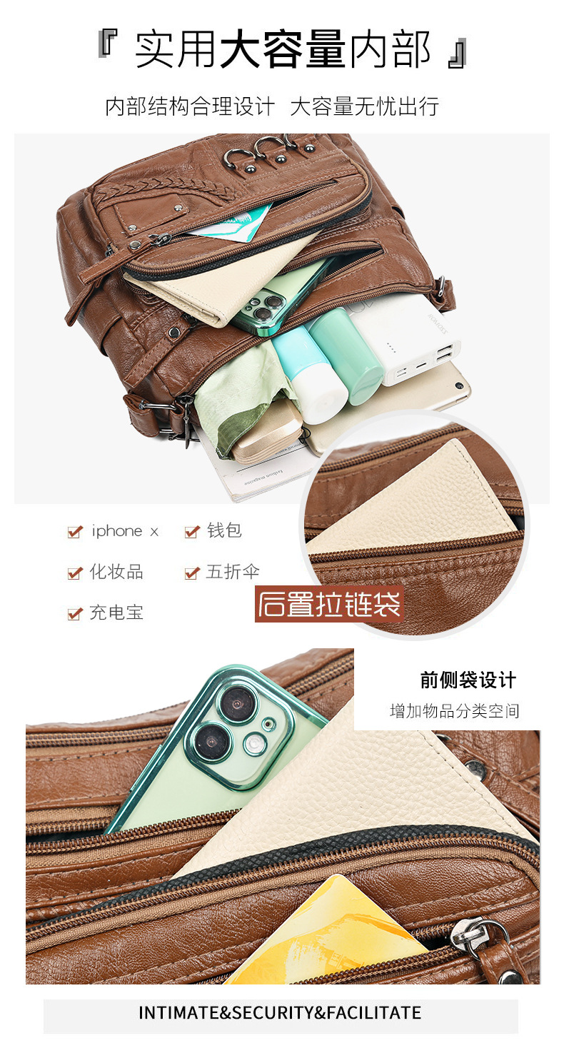 跨境软皮斜挎包新款时尚妈妈包包女大容量韩版简约多层单肩包包