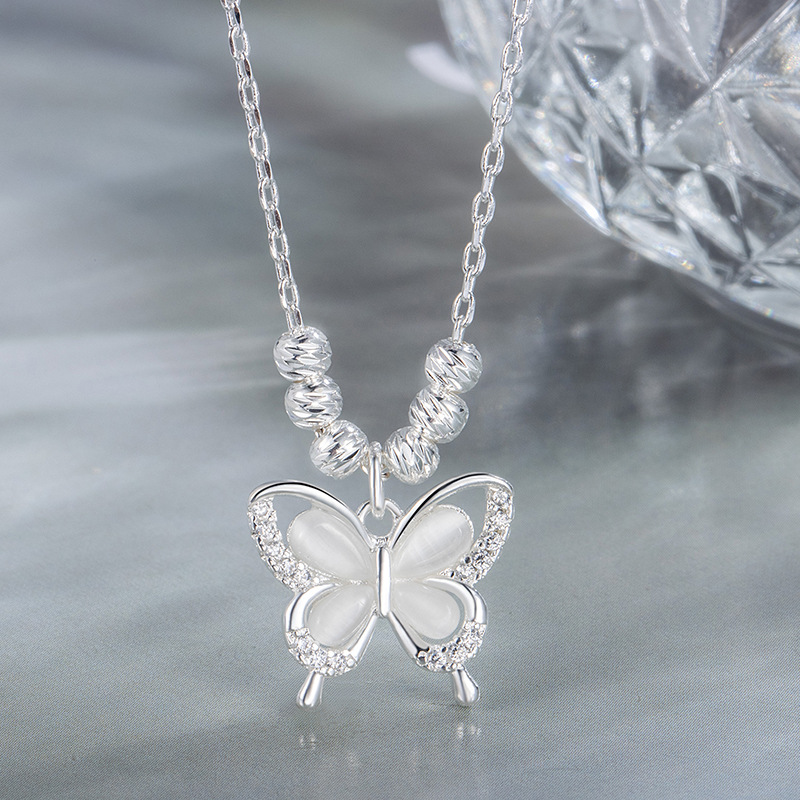 新しい中国式の猫の目の石の蝶のネックレスの女子学生の清冷感の小さい大衆は国の風のファッションを設計して百合の精巧で美しい鎖の骨のチェーン