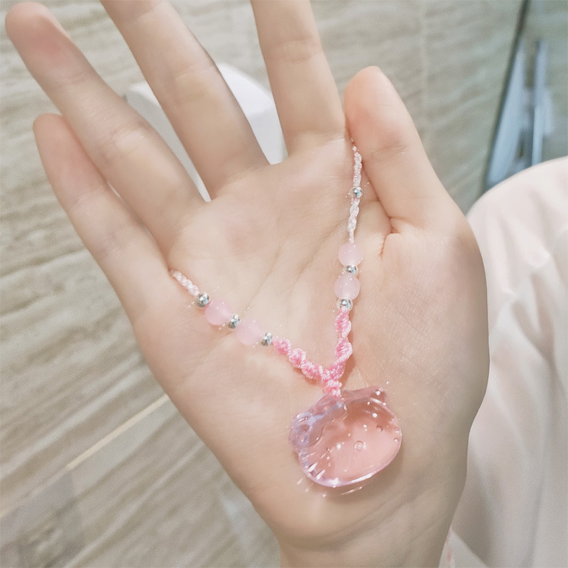 海億達オリジナルデザインピンクハローキティネックレス森系甘美な少女心手織り鎖骨鎖