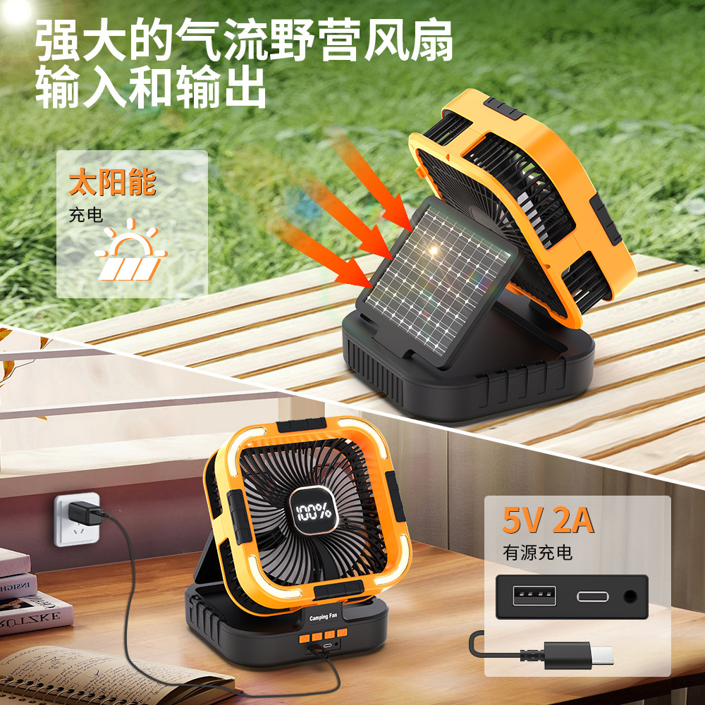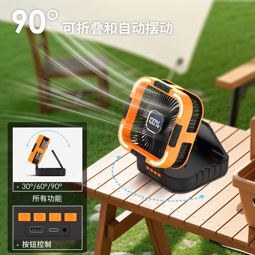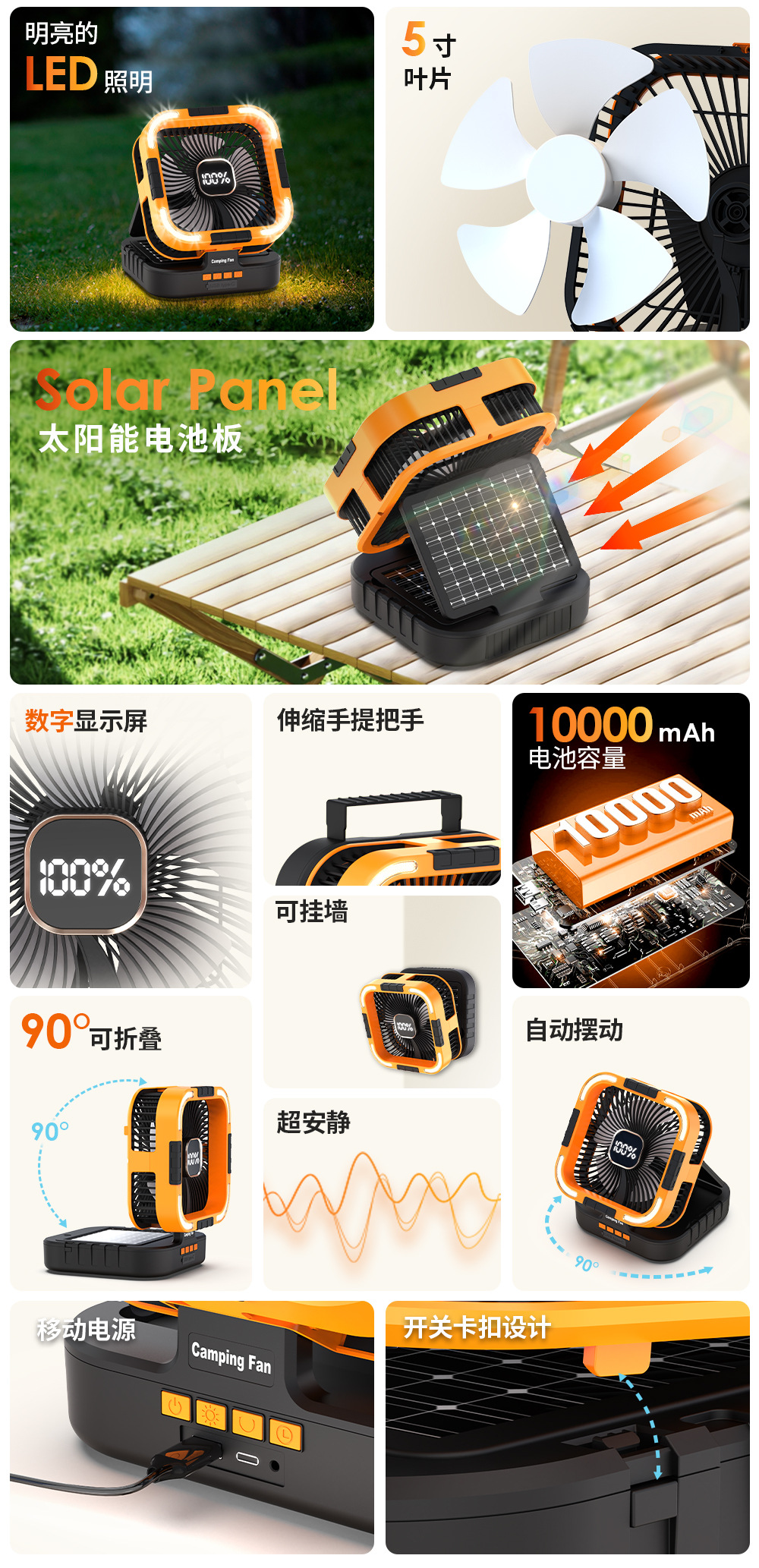 太阳能数显定时摇头风扇!10000毫安超长续航!