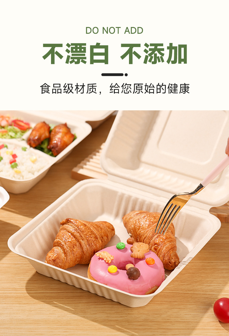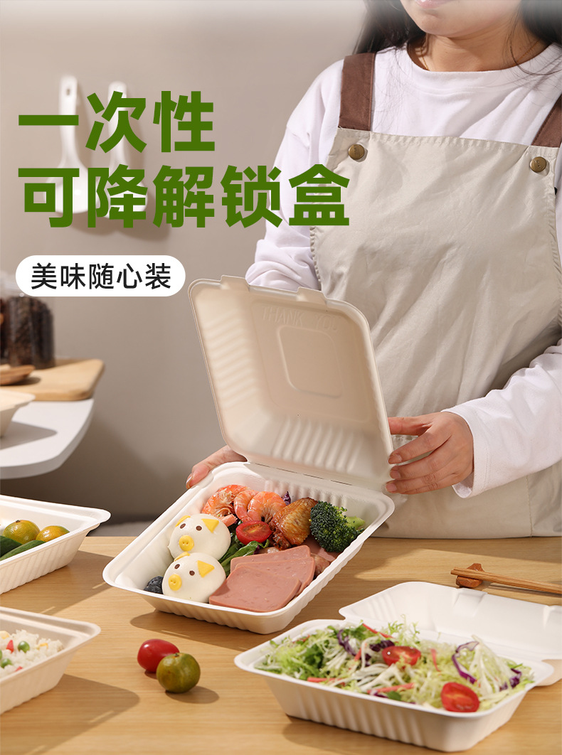 使い捨てランチボックス角箱分解性サトウキビ環境保護紙箱出前サラダ果物弁当箱蓋付き