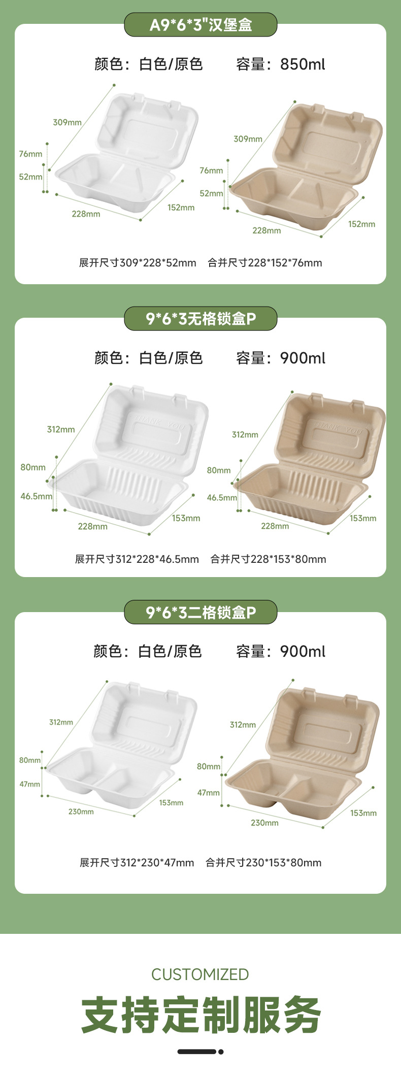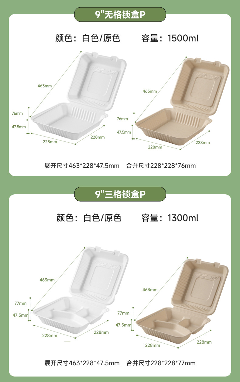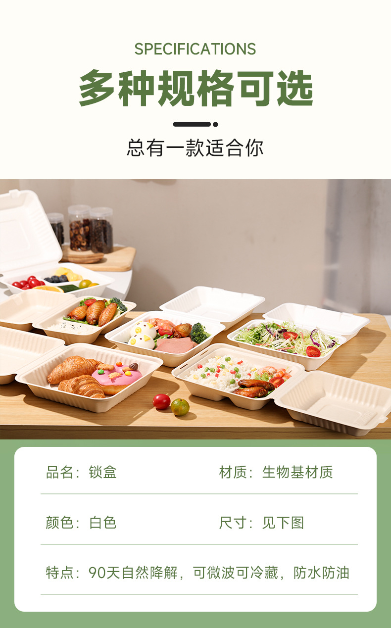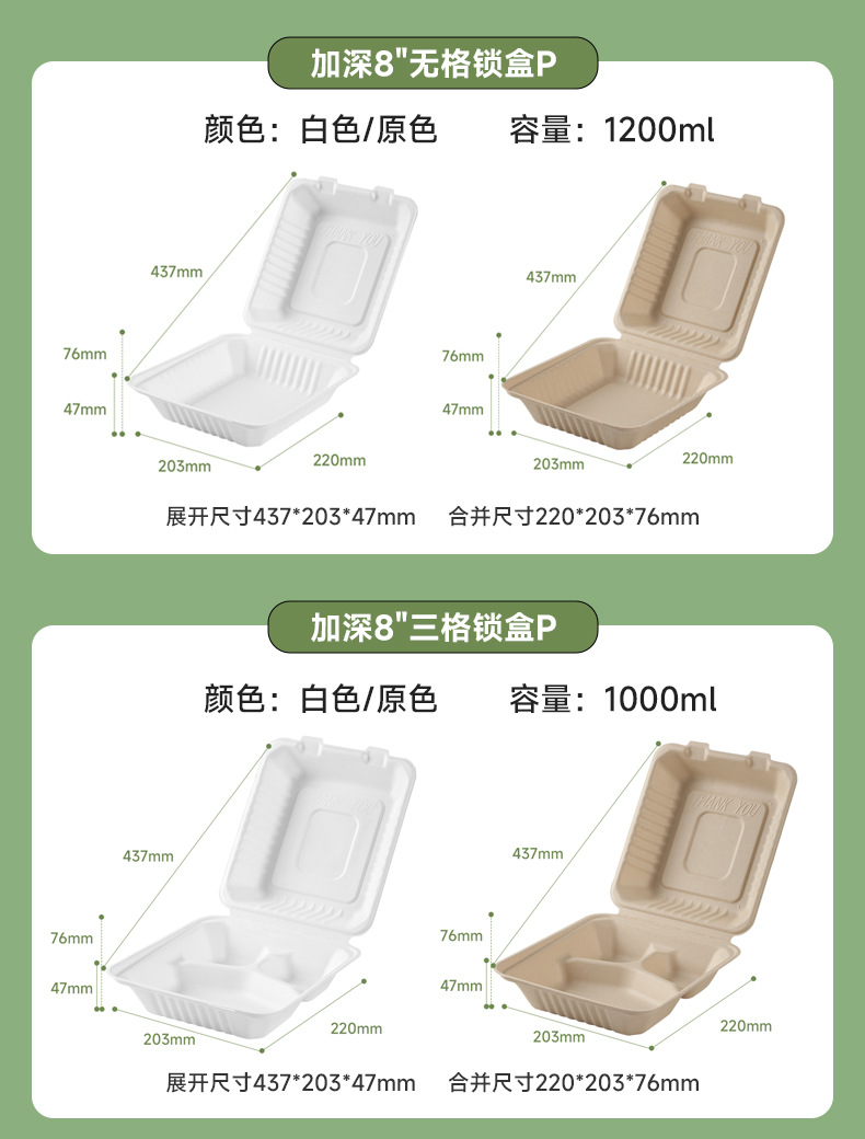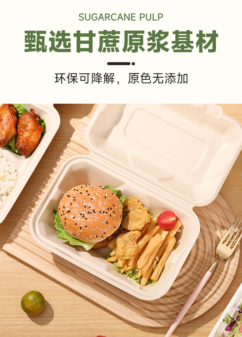 分解性連体ランチボックス9*6サトウキビパルプ単格双格ランチボックス1000ml使い捨て宅配箱