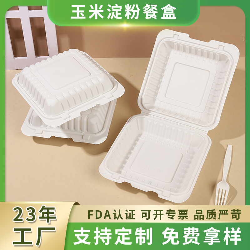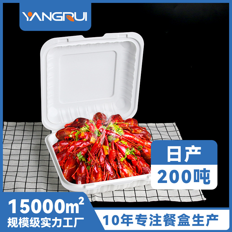 Yangrui 8inch 使い捨てランチボックス PP プラスチックアメリカンハンバーガーボックス白シングルコンパートメント炭酸カルシウムテイクアウトファーストフードボックス
