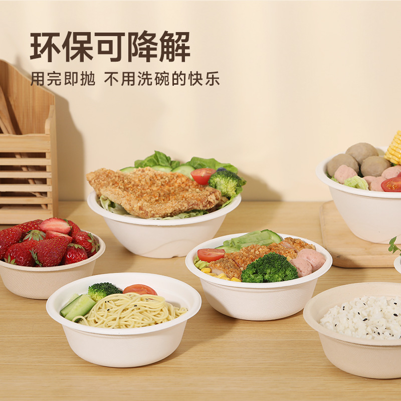 使い捨て弁当箱紙ボウルサトウキビパルプ分解性増粘食器ボウルハンバーガー紙パルプボックスフルーツディスクサラダボウル