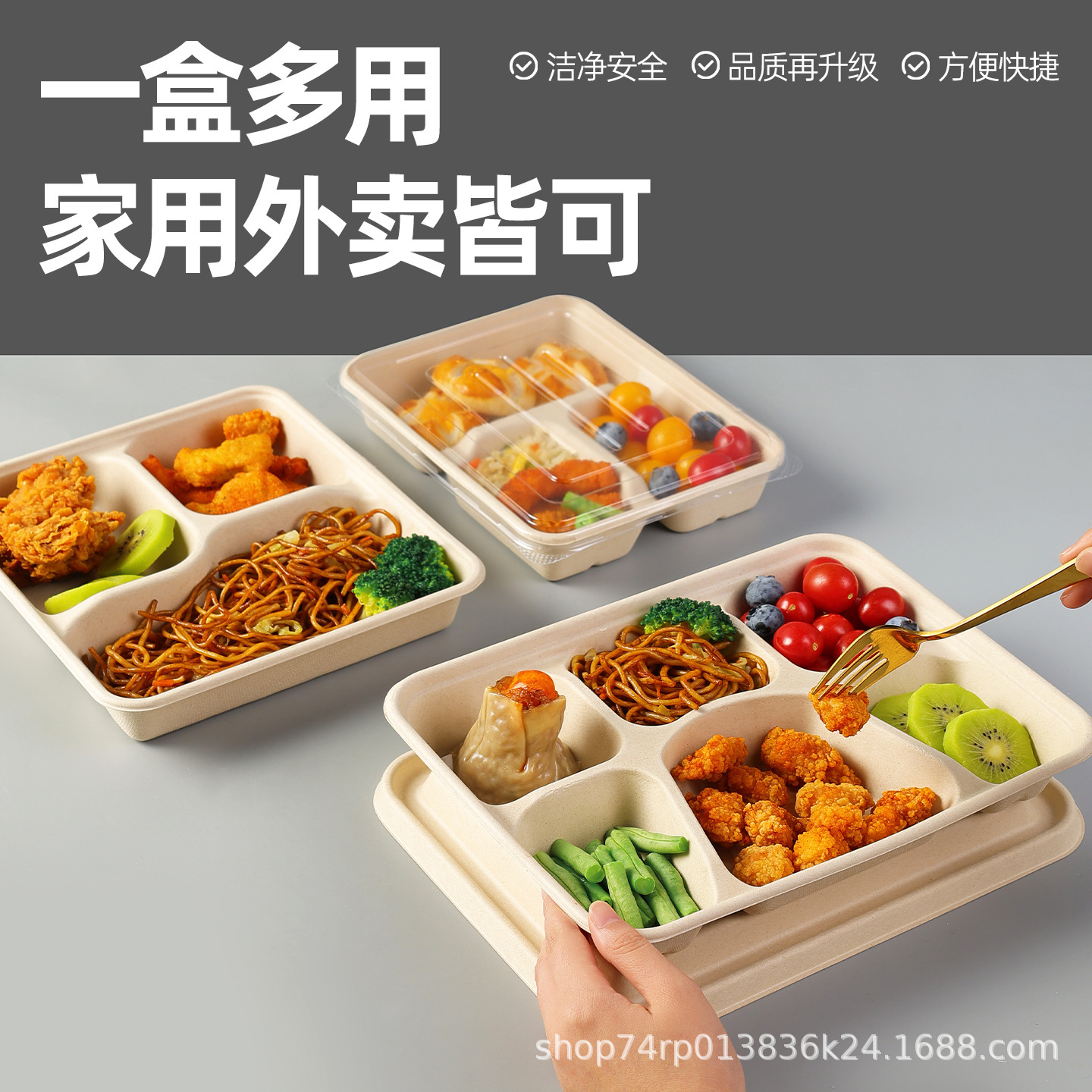 一次性餐盒四格饭盒外卖打包盒环保餐具纸浆便当盒食级快餐餐盘