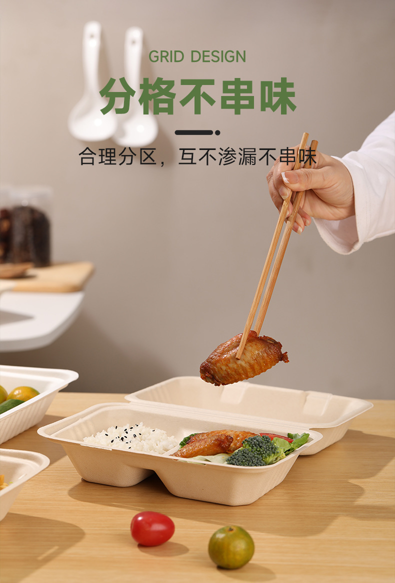使い捨てサトウキビパルプ生分解性弁当箱 厚めご飯箱 三つ仕切り テイクアウト用 ファーストフード 大容量割引 環境に優しい
