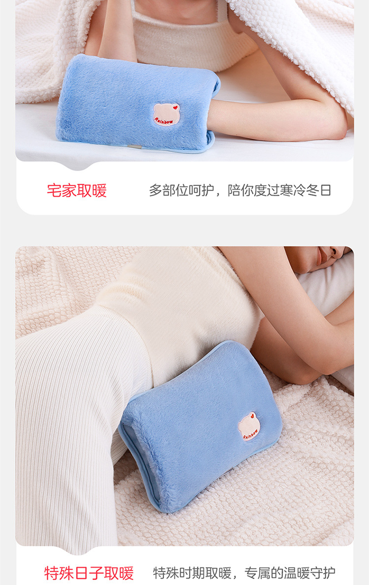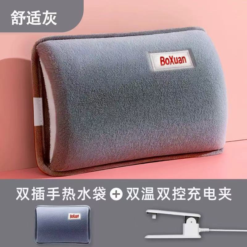 简约国标热水袋充电毛绒暖手宝女生款热敷肚子暖水袋电热宝免拆洗