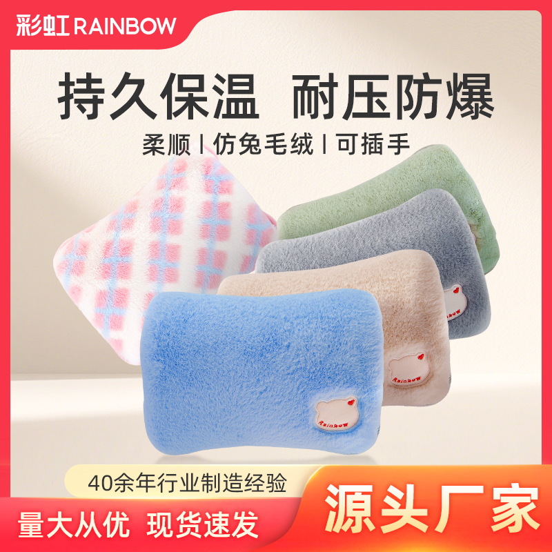 彩虹热水袋安全速热智能暖手宝充电防爆毛绒暖宝宝电热宝厂家直销
