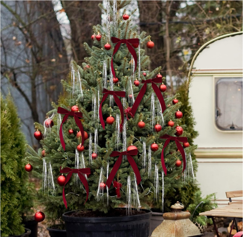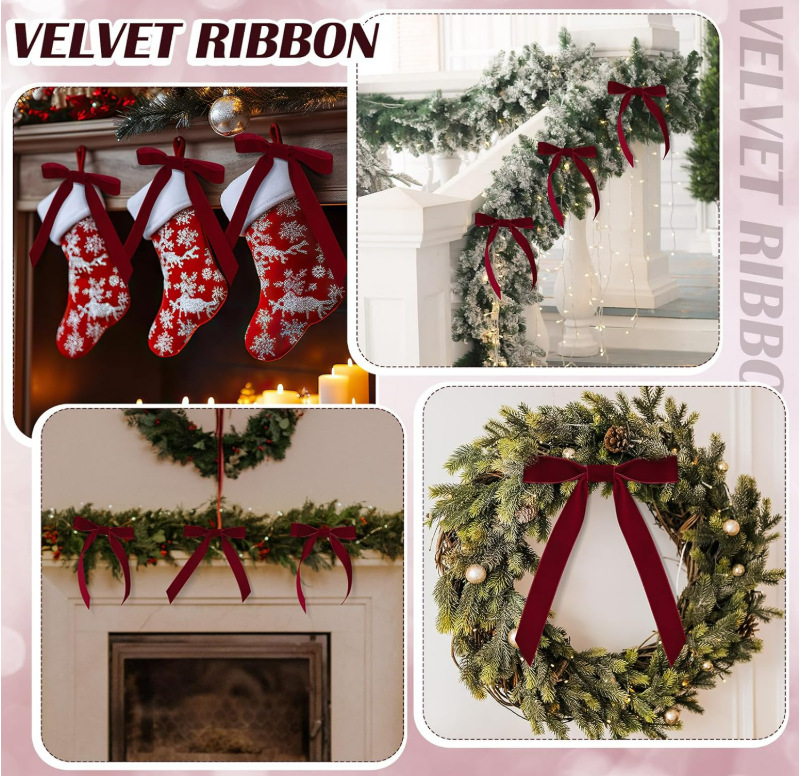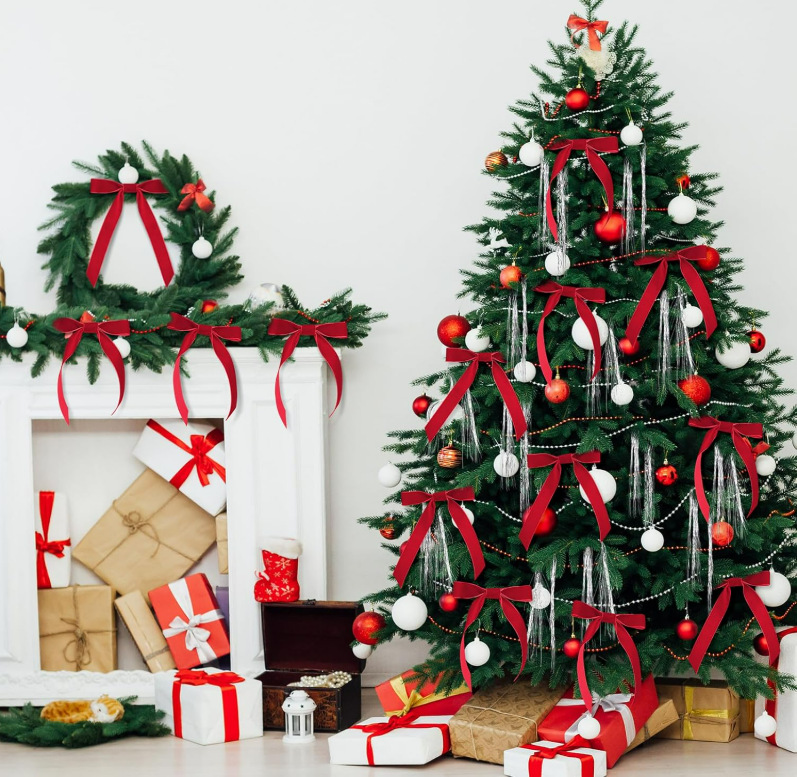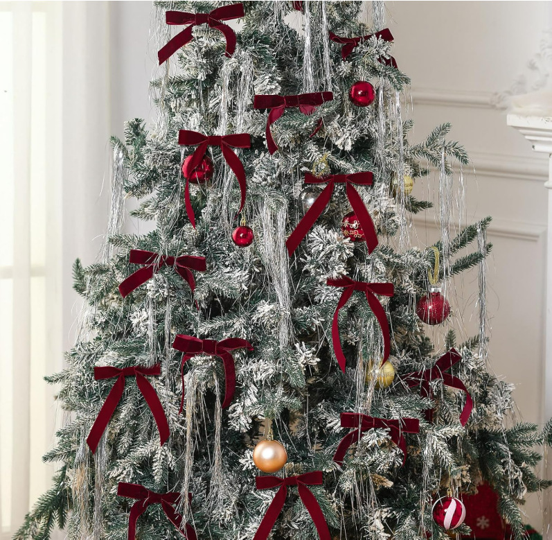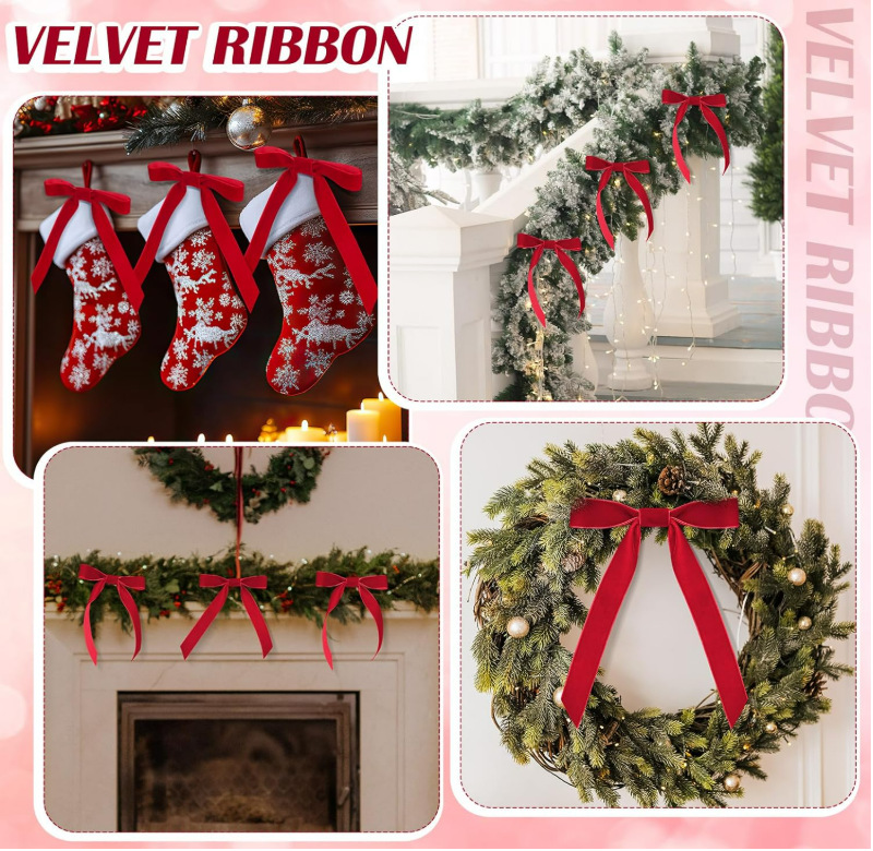 跨境现货2.5cm天鹅绒丝带蝴蝶结圣诞树装饰圣诞节日场景挂饰挂件