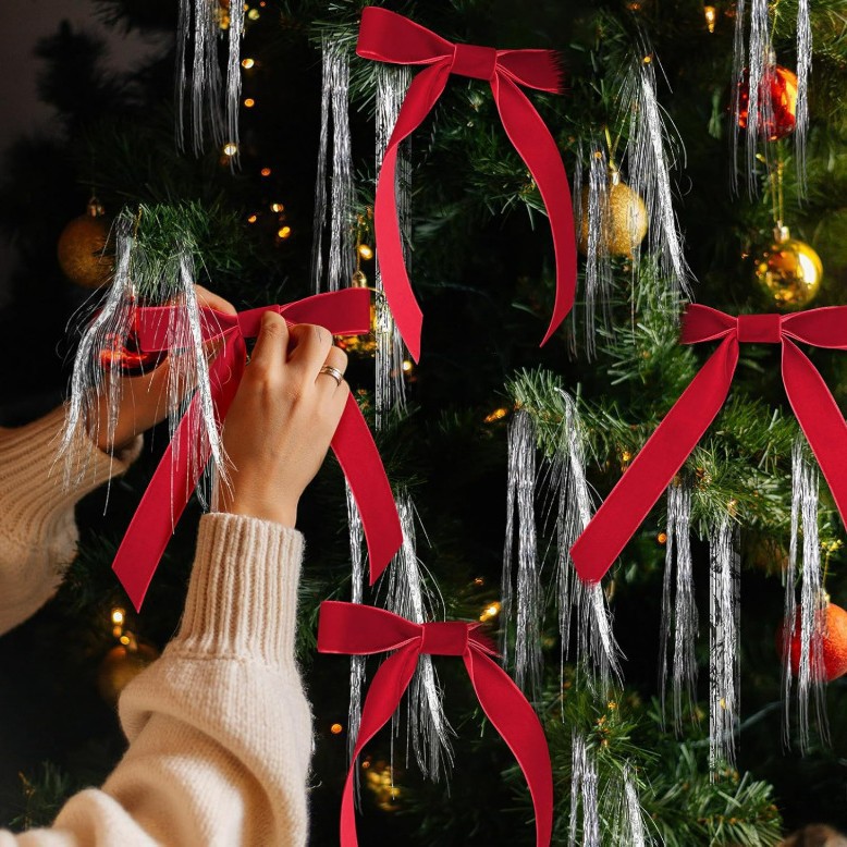 Dou Rui クロスボーダー クリスマス デコレーション 12 パック ワイド ボウ ストラップ クリスマス ツリー デコレーション アクセサリー ペンダント