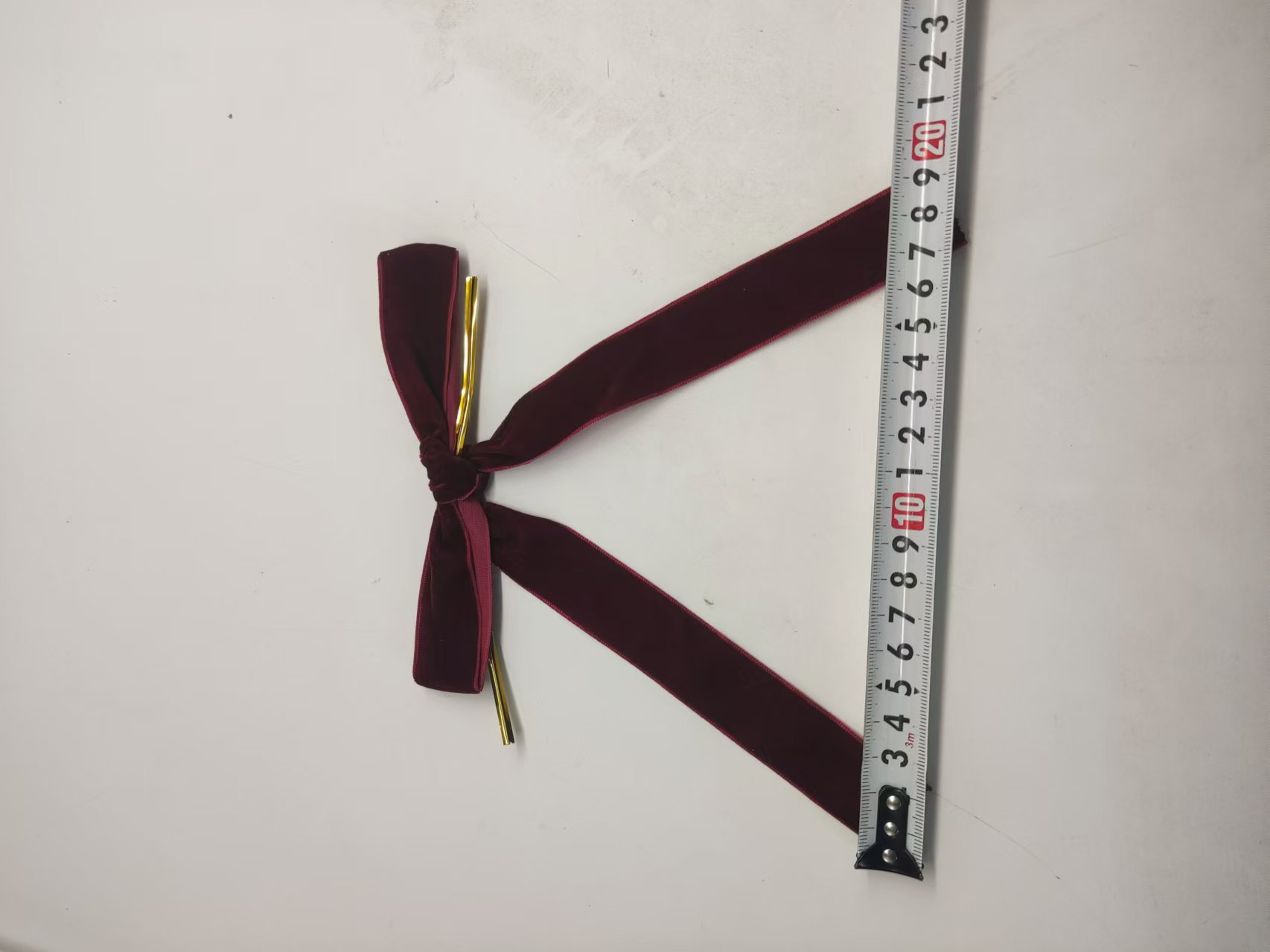 跨境热卖2.5cm丝绒圣诞节装饰圣诞树挂饰蝴蝶结扎带扎丝礼品挂件