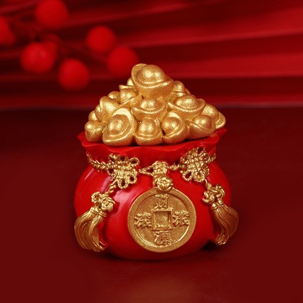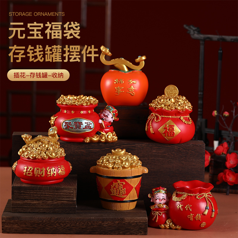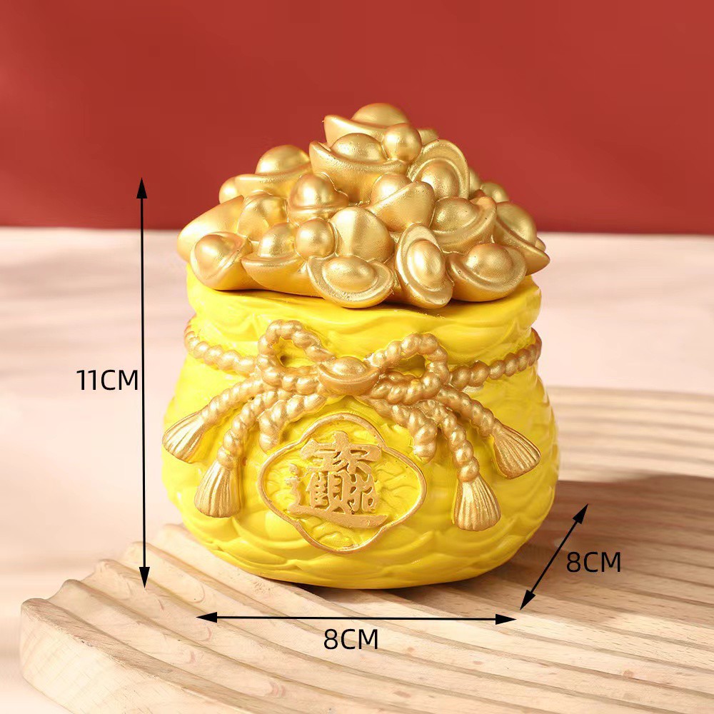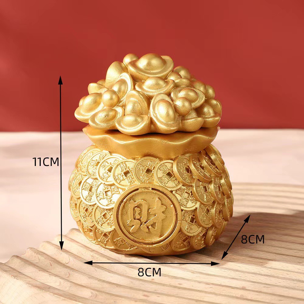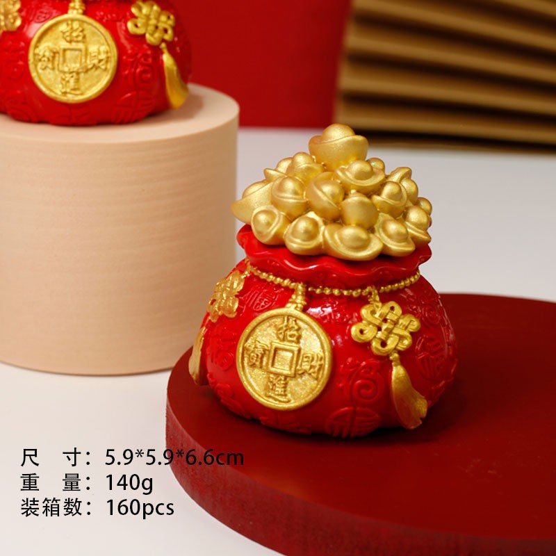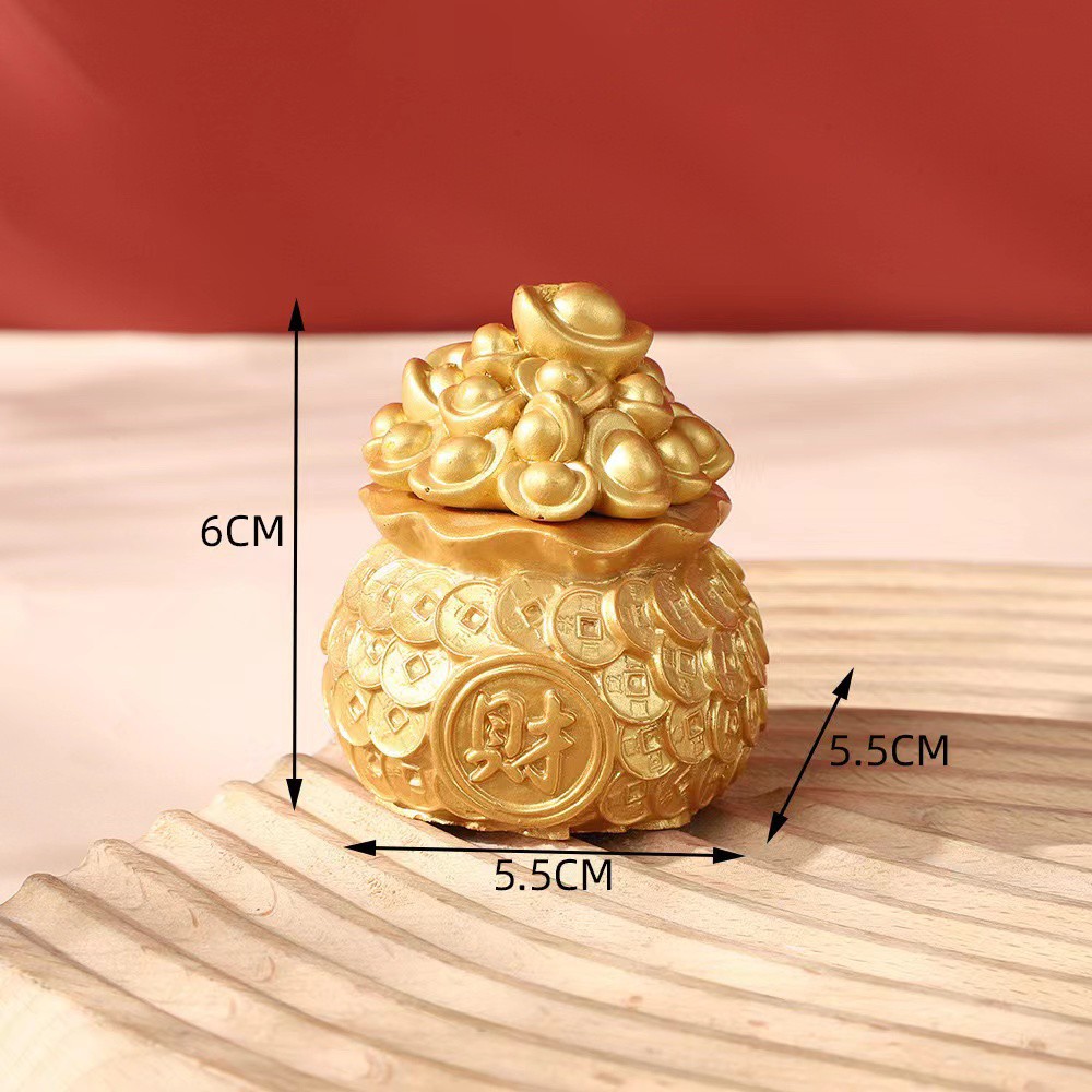 国風招財進宝樹脂小置物新中国式車載金元宝銭袋新年創意装飾工芸品