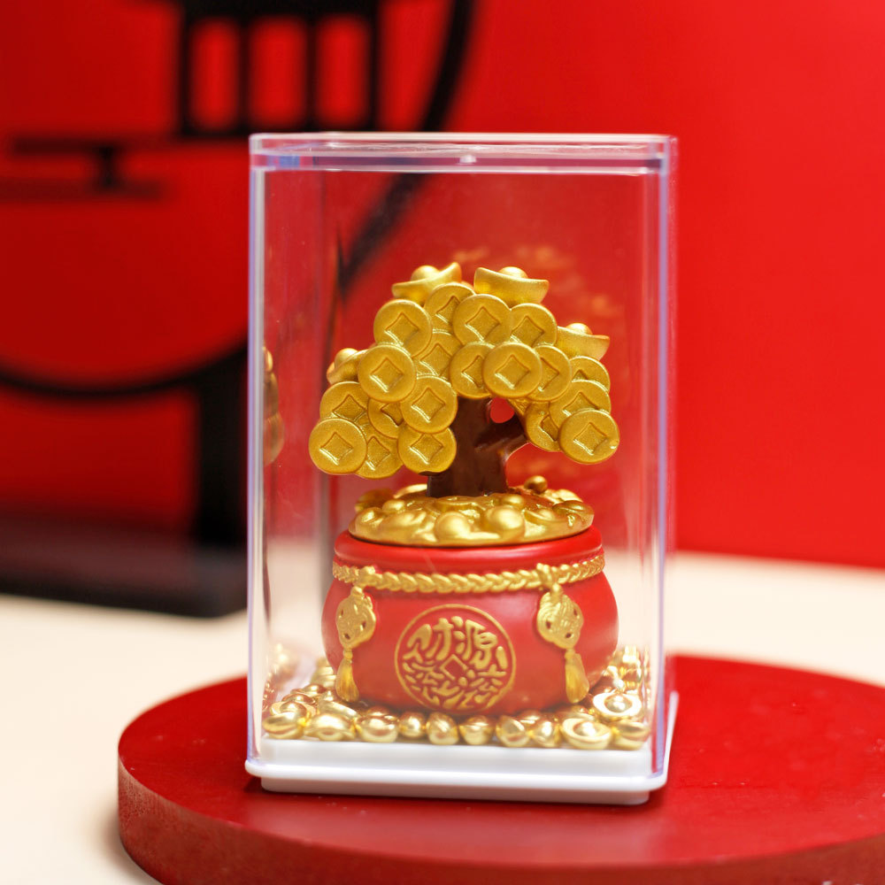 财神爷招财进宝福字发财树亚克力盒摆件开业大吉桌面装饰收纳礼品