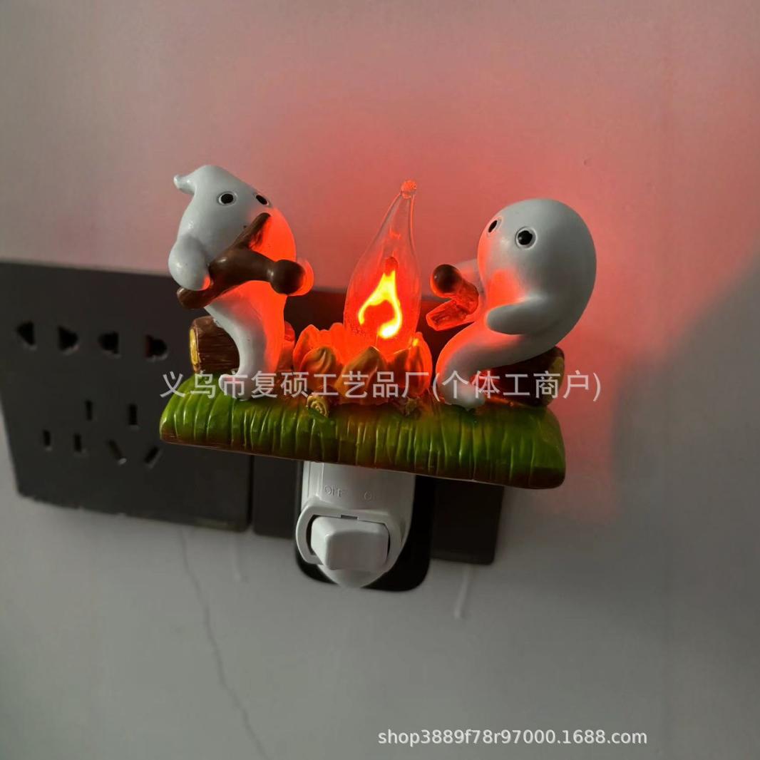 国境を越えた新製品2024 Ghost Campfireフリップリングナイトライトハロウィーン夜灯