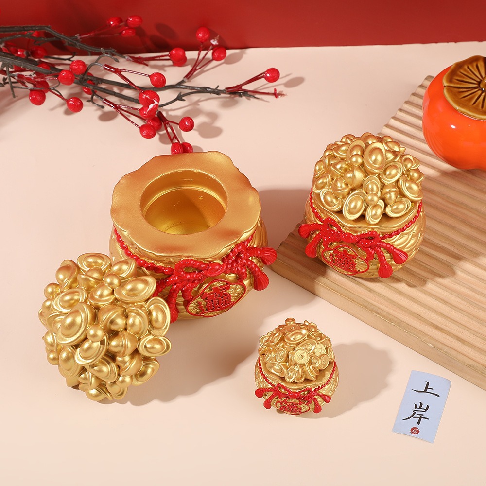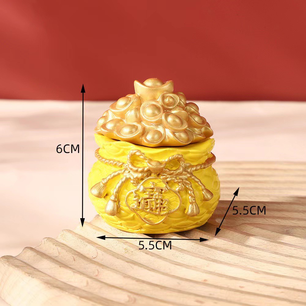 春节办公桌面招财聚宝盆树脂摆件汽车中控台车载金元宝钱袋工艺品