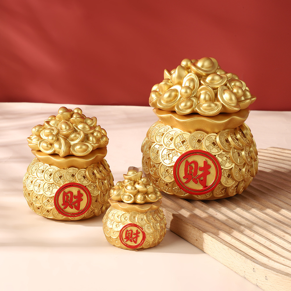 オフィスデスクトップ招財金元宝銭袋置物新中国式金持ち宝盆福袋装飾樹脂工芸品