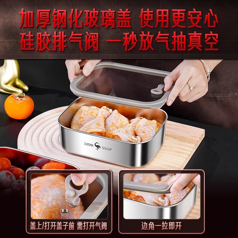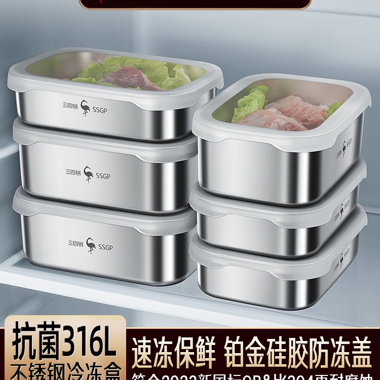 Ssgpタッパーボックス304ステンレス食品グレード大容量食品冷蔵庫専用シール冷凍収納ボックス