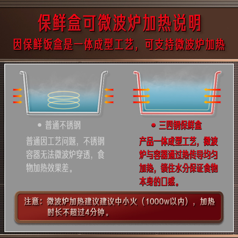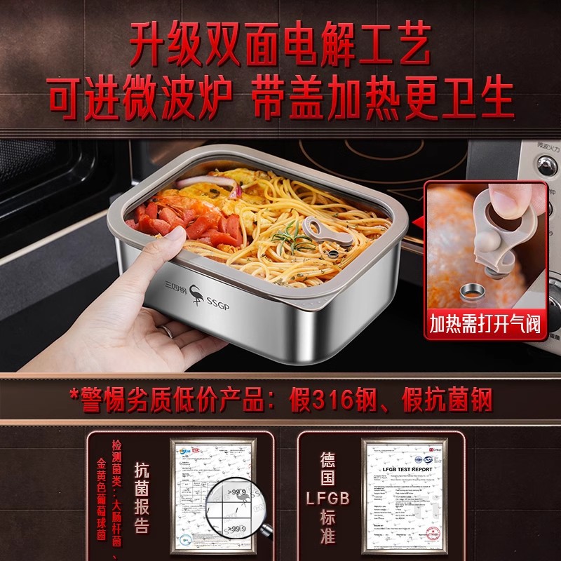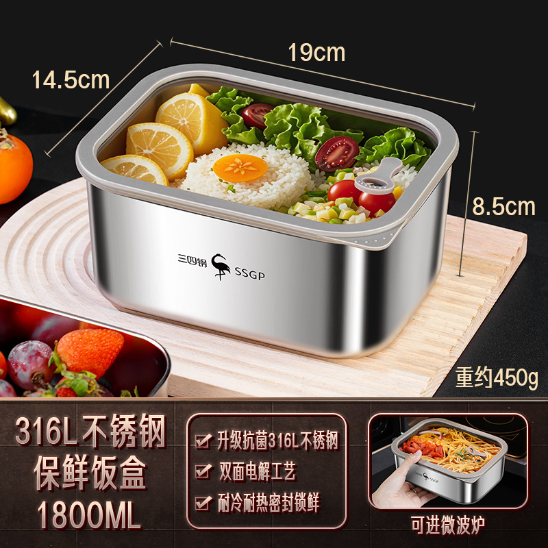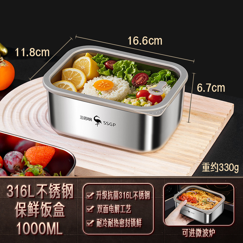 三四鋼ステンレス弁当箱316L食品級鮮度保持箱電子レンジ加熱専用弁当箱密封弁当箱