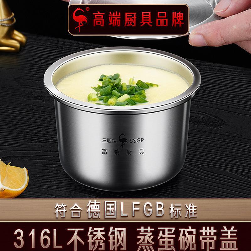 三四钢®蒸蛋碗蒸饭加厚316L不锈钢食品级带盖蒸鸡蛋羹炖盅专用碗