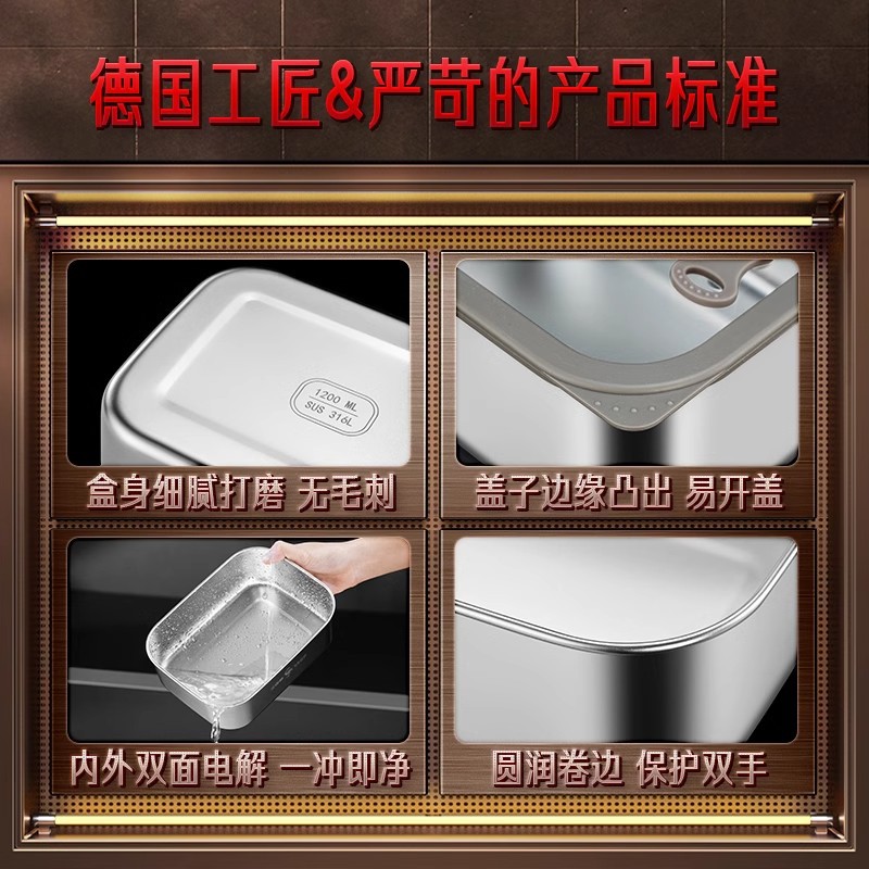 ドイツ三四鋼鮮度保持箱食品級316Lステンレス密封弁当箱冷蔵庫専用収納箱